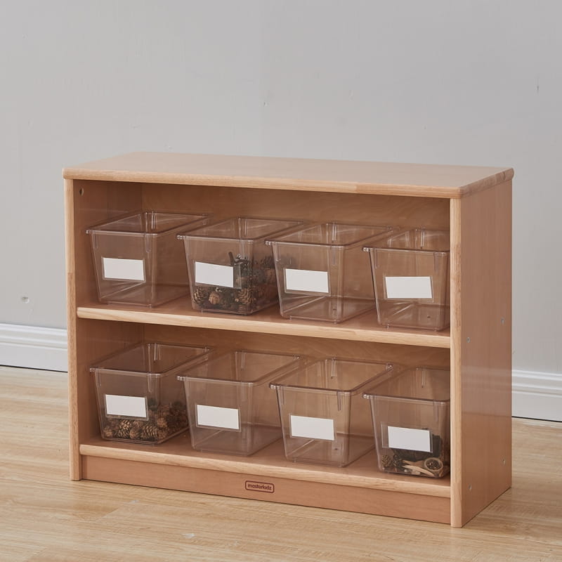 Pojemniki przystosowane są do użytkowanie w połączeniu ze specjalnym regałem (ME13095) Masterkidz, która pozwala na umieszczenie wszystkich 12 pojemników na przeznaczonych do tego półkach. Tym sposobem dziecko ma wszystkie akcesoria w zasięgu ręki, a przenoszenie zabawy w inne miejsca jest lekkie i łatwe.