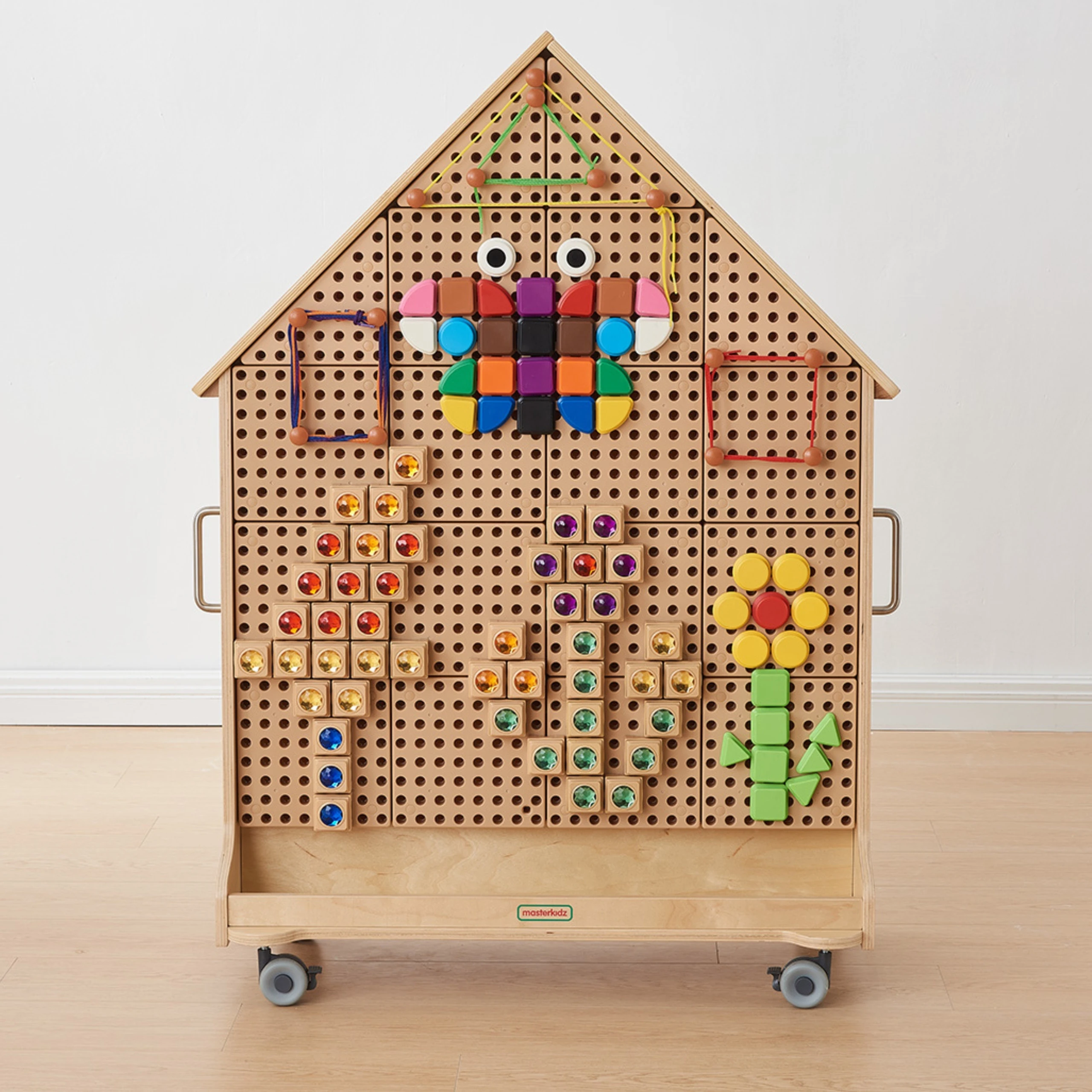 Wolnostojąca Tablica STEM w kształcie domku to doskonały wstęp do świata STEM. Wspaniały panel edukacyjno-naukowy, który za pomocą kółek w łatwy sposób można przemieszczać. Dzięki tej Tablicy maluch poznaje świat mechanizmów, fizyki, matematyki oraz wielu innych ciekawych rzeczy. Dedykowane kołeczki, a także kolorowe elementy umożliwiają Twojemu dziecku na stworzenie niepowtarzalnych konstrukcji oraz wspaniałych wzorów.