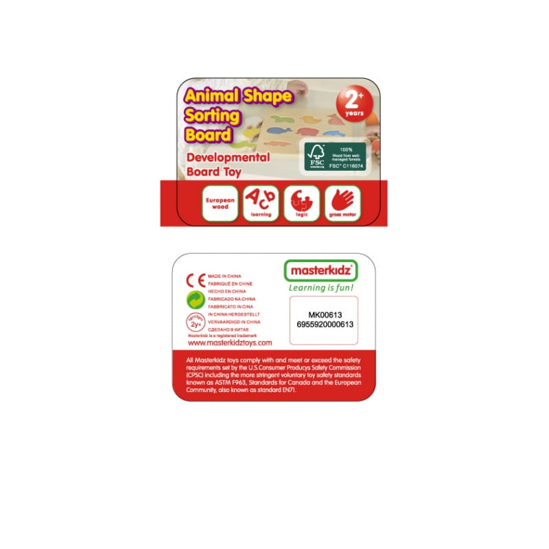 Drewniany sorter kształtów firmy Masterkidz, z zestawem kolorowych zwierzątek, które należy umieścić w odpowiednich otworach. Dzięki tej ekologicznej zabawce, maluszek może rozwinąć bardzo ważne w jego rozwoju umiejętności. Przede wszystkim, żądne wiedzy dwuletnie dziecko może poznać różne gatunki zwierząt. Zachęcamy do rozwinięcia zabawy i zachęcanie do naśladowania odgłosów jakie robią konkretne zwierzątka, podczas dopasowywania ich do otworków.