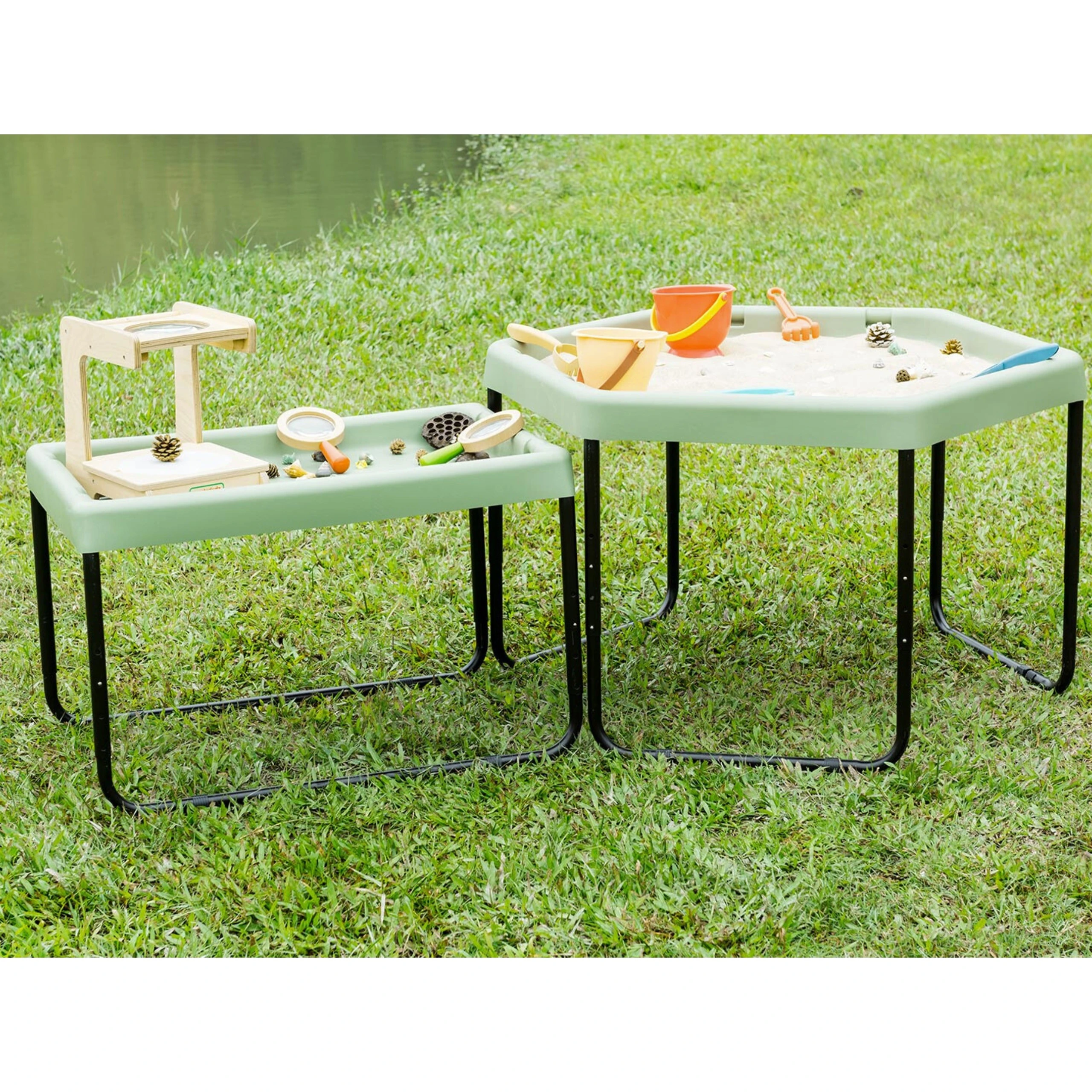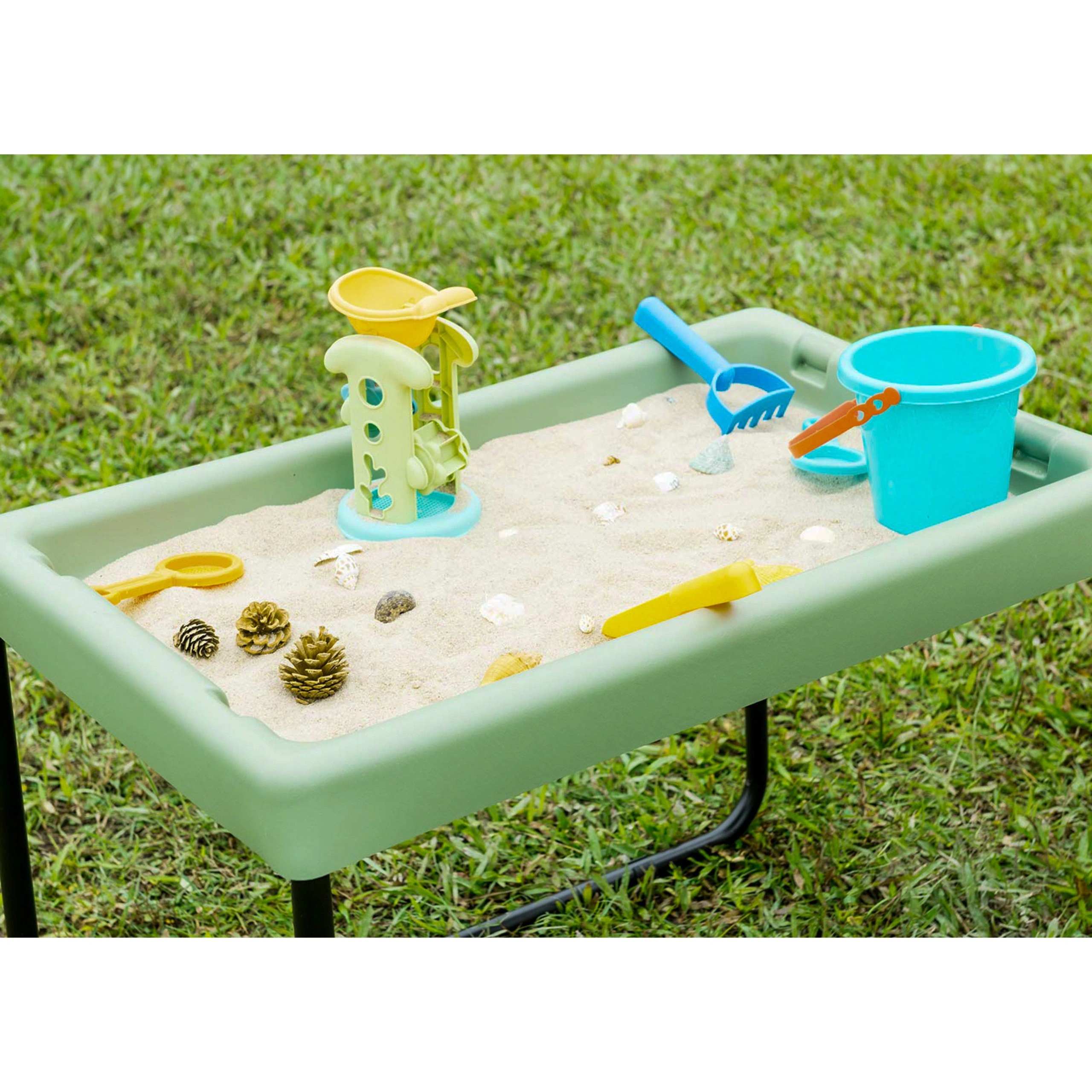 Nasza duża taca sensoryczna to idealne rozwiązanie do eksploracji piasku, wody, błota, farb czy innych kreatywnych materiałów! Stworzona z wytrzymałego tworzywa sztucznego, doskonale nadaje się zarówno do użytku wewnętrznego, jak i na świeżym powietrzu. Dzięki regulowanym stalowym nogom taca dostosowuje się do potrzeb dzieci w różnym wieku, rosnąc razem z nimi! Jej solidna konstrukcja sprawia, że to doskonałe rozwiązanie do domów, przedszkoli, żłobków i szkół, oferując dzieciom przestrzeń do twórczej zabawy i sensorycznych doświadczeń.