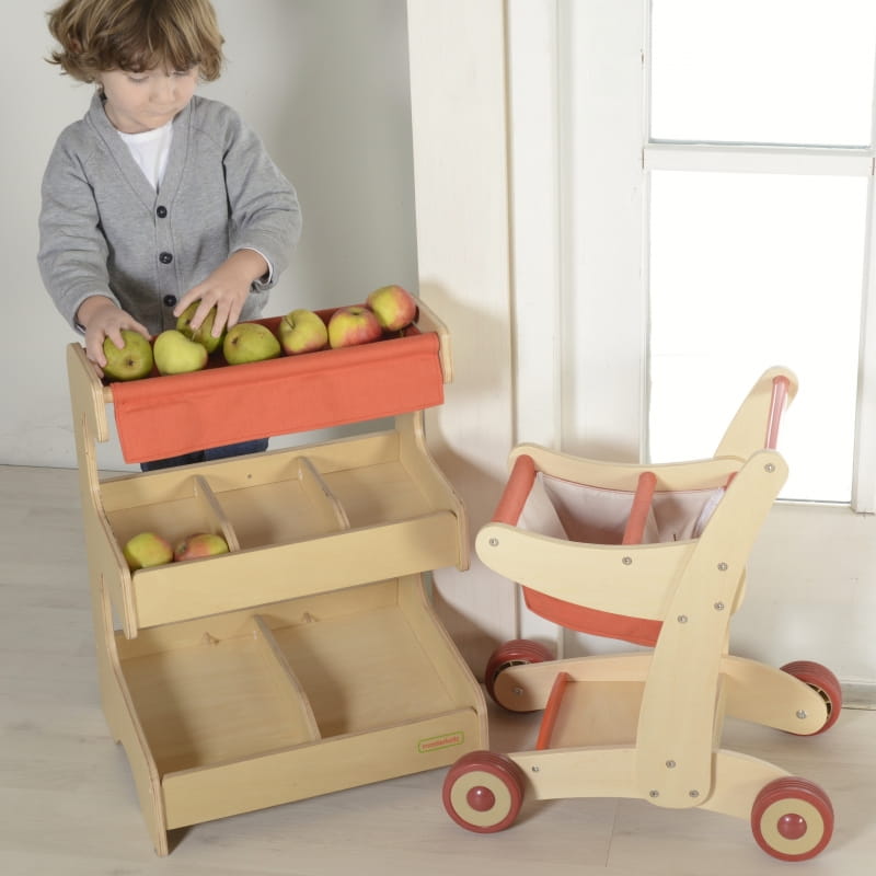 Drewniane stoisko targowe marki Masterkidz to świetna zabawka, dzięki której zabawa w sklep będzie jeszcze ciekawsze. Dziecko może wystawić swoje ulubione warzywa i owoce, by zacząć je sprzedawać. Razem z wózkiem na zakupy i kasą sklepową Masterkidz, tworzy świetny zestaw.