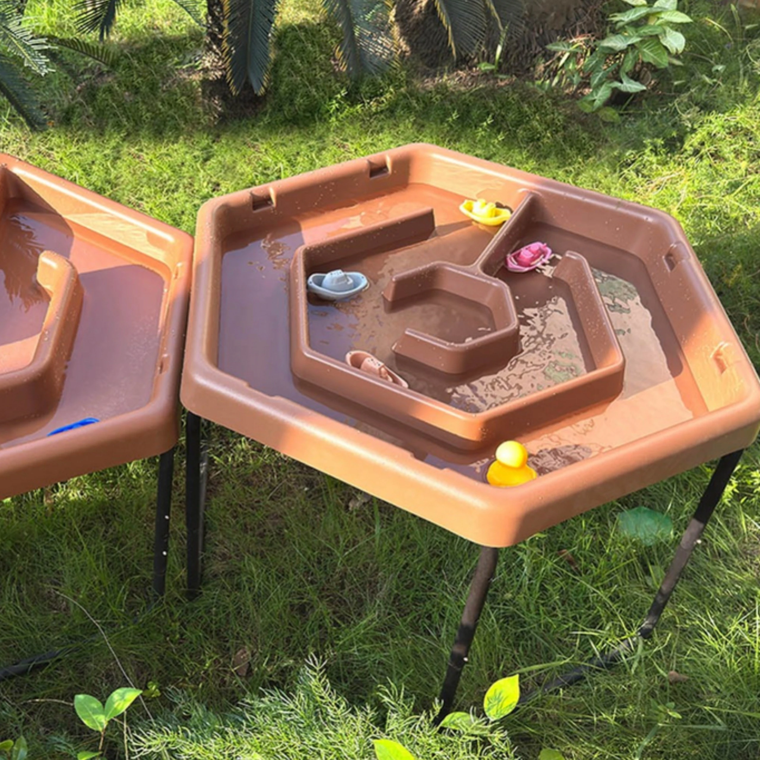 MASTERKIDZ Sześciokątny Stolik Do Zabawy Piaskiem i Wodą Labirynt Regulowana Wysokość