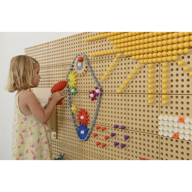 - - Zestaw kół zębatych i trybików marki Masterkidz służy do montażu w ich specjalistycznym systemie Masterkidz STEM. Do edukacyjnej ścianki należy przykręcić każdy pożądany element za pomocą specjalnych śrubek przystosowanych do narzędzi dla dzieci marki Masterkidz