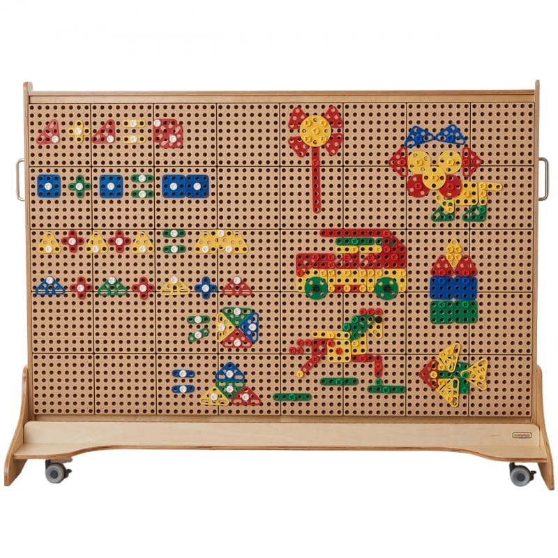 Zestaw zawiera 260 elementów, które umożliwiają kreatywne budowanie i naukę w ramach STEM. Składa się z różnych kształtów (kwadratów, trójkątów, kół, półkół) w czterech kolorach (czerwonym, zielonym, żółtym, niebieskim) oraz płaskich pasków o prostych i prostokątnych kształtach. Wszystkie elementy mają otwory, które pozwalają na mocowanie ich do powierzchni za pomocą śrub. Dzieci mogą tworzyć projekty samodzielnie lub w grupach, ucząc się planowania, wyboru elementów, dodawania detali i udoskonalania swoich dzieł. Zestaw rozwija zdolności matematyczne, przestrzenne i kreatywne, zachęcając do tworzenia symetrycznych i realistycznych modeli, takich jak kwiaty czy inne konstrukcje. Może być używany w różnych środowiskach, np. na ścianach STEM, stołach lub wózkach.