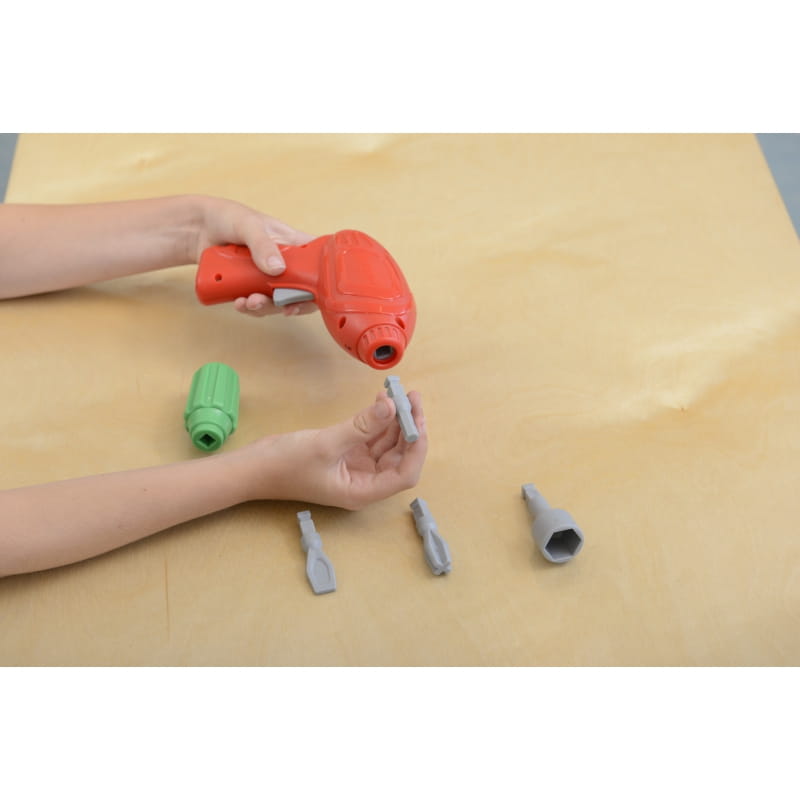raktyczny zestaw narzędzi dla dzieci, dzięki którym zabawa ze ścianką Masterkidz STEM będzie dużo ciekawsza! W zestawie śrubokręt z 4 wymiennymi końcówkami, klucz, wkrętarka, oraz półeczka do przechowywania. Narzędzia służą do przykręcania i odkręcania śrub Masterkidz. Zabawka ćwiczy motorykę dzieci, oraz uczy je poprawnego używania podstawowych narzędzi.