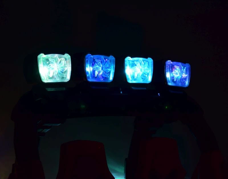 świecące światła przednie - reflektory oraz migające światła do jazdy dziennej, dodatkowo świecąca maska oraz świecący pałąk tylni - imitacja halogenów - każdy świeci w 4 kolorach,