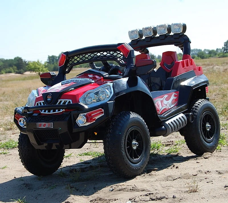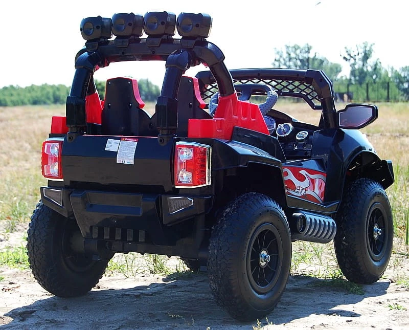 | Dodatkowe funkcje: | Dźwięki klaksonu, melodie , dźwięk uruchamiana silnika, 3 prędkości. pilot zdalnego sterowania 2.4 Ghz , wejście na MP3, oświetlenie na pałąku, pompowane koła, amortyzatory, wskaźnik LED |