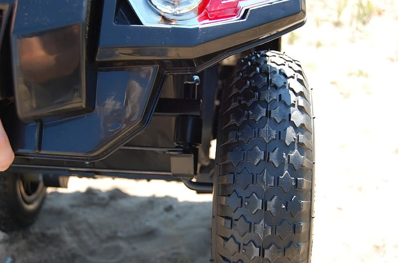 | Komfort jazdy: | wejście MP3, wgrane piosenki w pamięć, 3 prędkości jazdy z pilota, duże pompowane koła, uruchamiany za pomocą kluczyka, amortyzatory na 4 kołach |