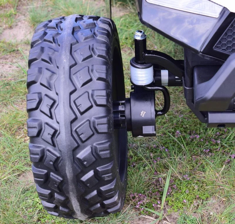 Mega koła i amortyzatory z przodu i z tyłu pojazdu: