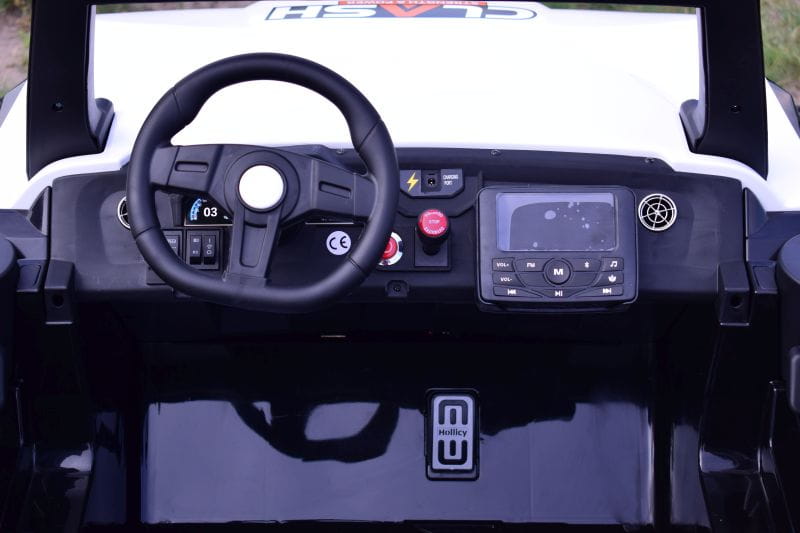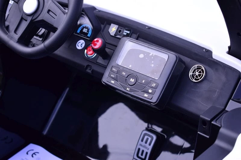 Kierownica z klaksonem oraz różne melodie wgrane w panel są dodatkową atrakcją. Panel posiad wejście na USB, AUX, kartę pamięci i bluetootha