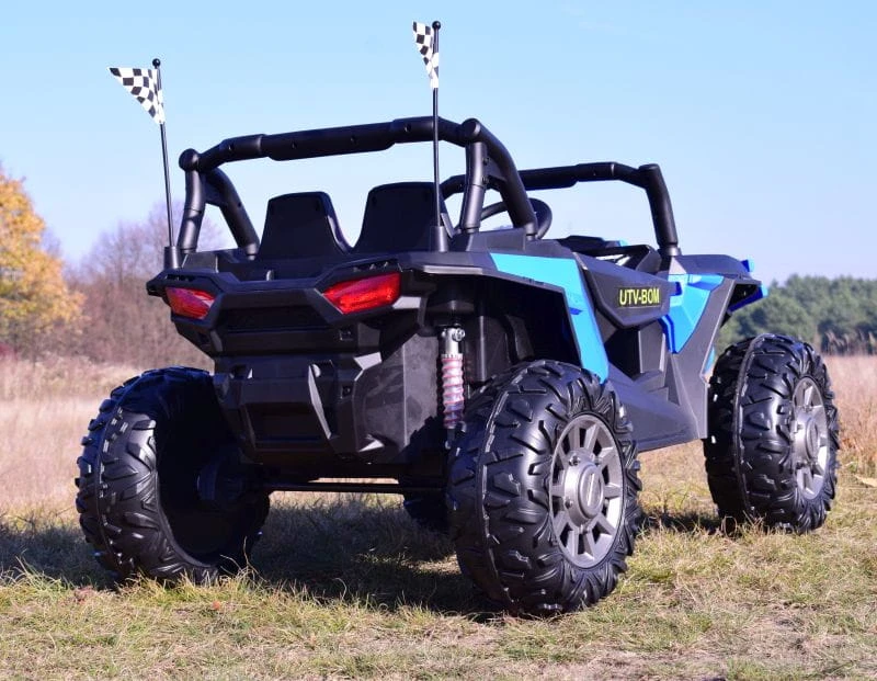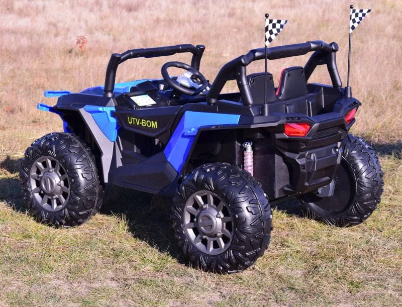NAJWIĘKSZY BUGGY UTV BOM 24 V z pełnej wersji napędzany dwoma mocnymi silnikami 200 W, z całą pewności zainteresuje młodego wielbiciela jazdy po terenie.