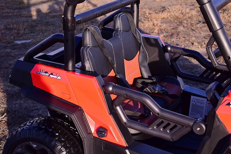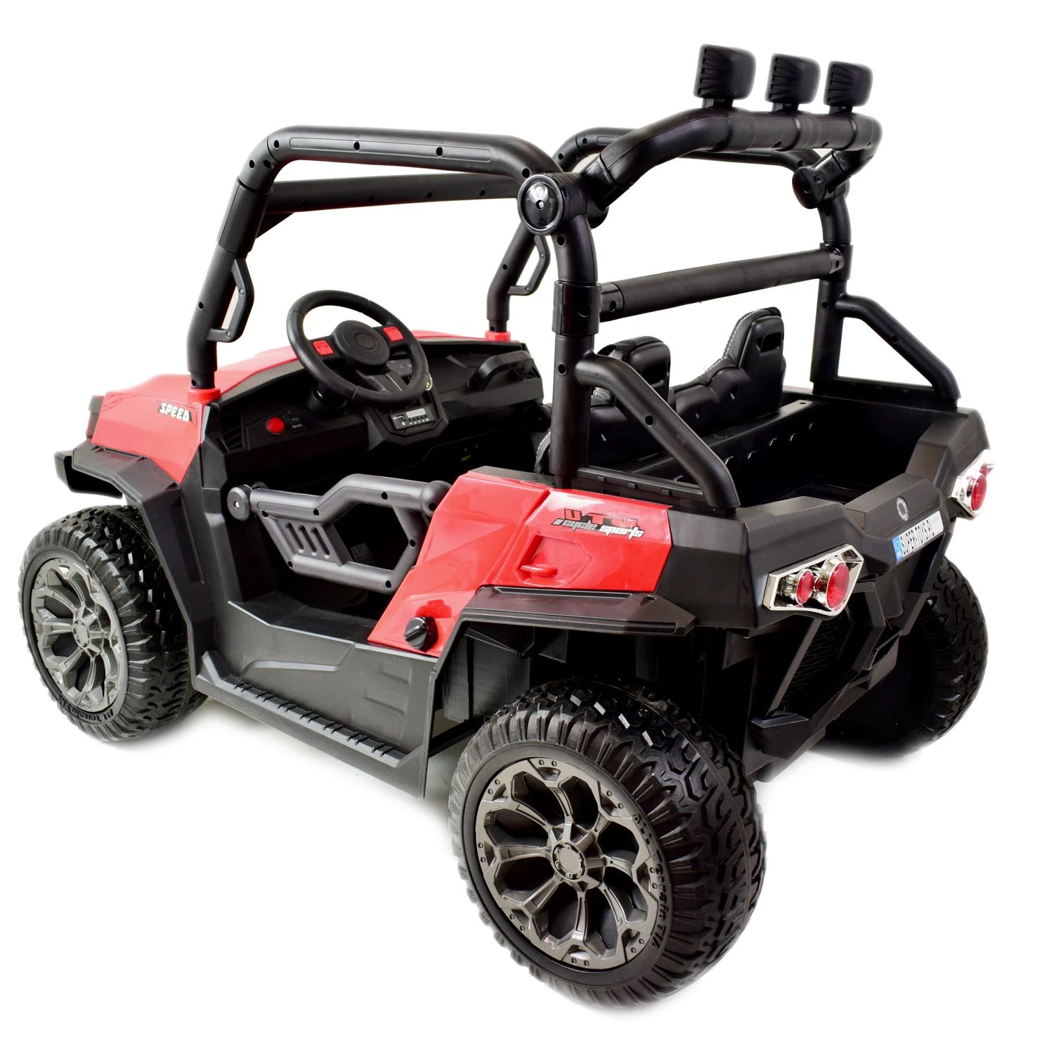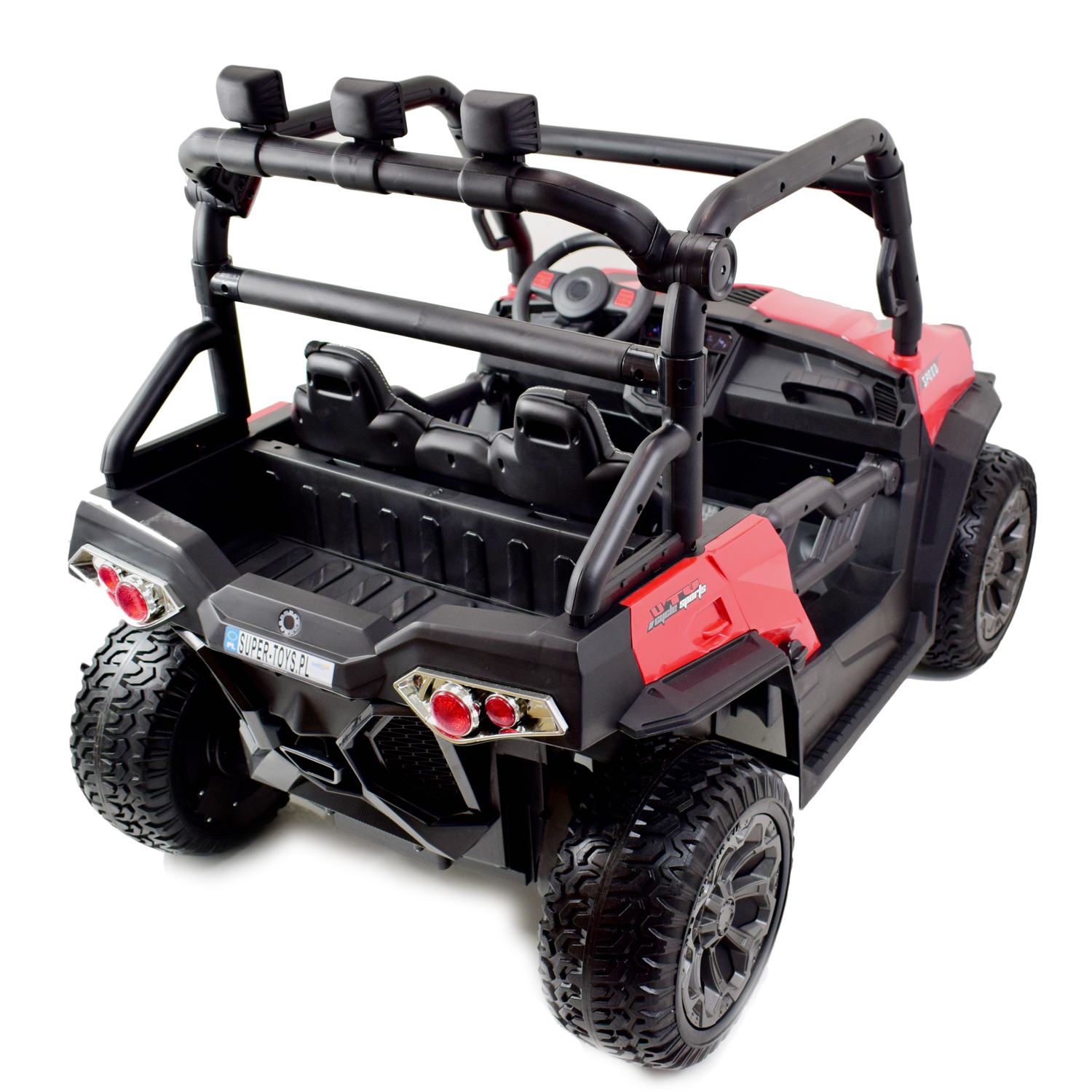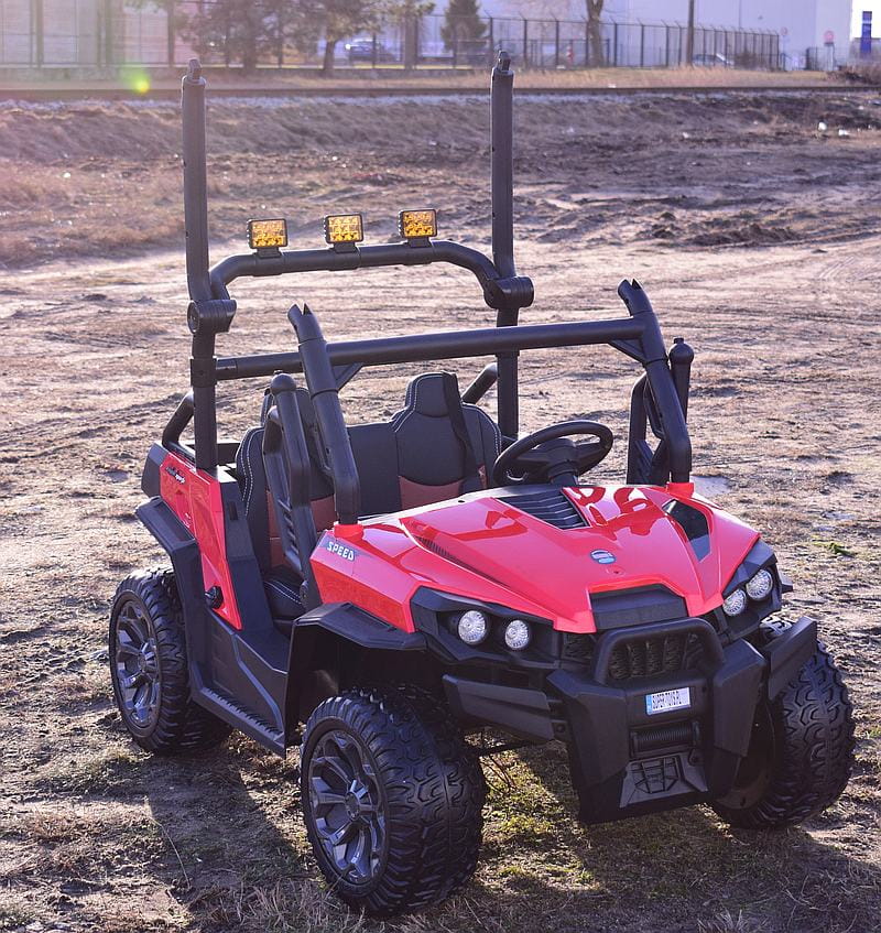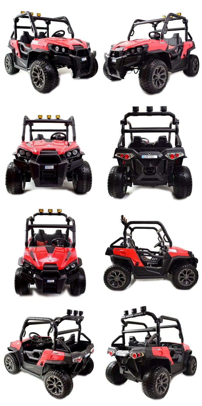 AUTO MEGA BUGGY UTV 7988 HIGH zasilane na 1x12 V z napędem na 4 koła zachwyci nie jednego przyszłego kierowcę. Dzięki zastosowanym najmocniejszym silnikom 45 W, auto jeździ po nierównym terenie bez żadnych problemów, a dodatkowo silniki te są bardzo dobrej jakości. Najciekawszą funkcją pojazdu są AMORTYZATORY, OTWIERANE PODNOSZONE DRZWI I BARIERKA.