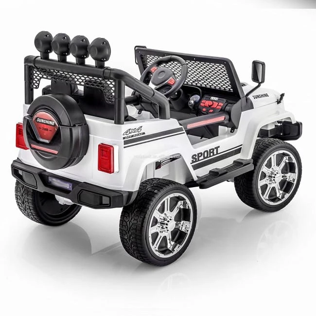 AUTO MEGA JEEP SUNSHINE Z NAPĘDEM 4X4 z systemem ESW - system wolnego startu, hamulcem oraz z kołami EVA i miękkim siedzeniem zasilane na 12 V z napędem na cztery koła zachwyci nie jednego przyszłego kierowcę. Dzięki zastosowanym najmocniejszym silnikom 45 W, auto jeździ po nierównym terenie bez żadnych problemów - posiada olbrzymie miękkie koła EVA, Najciekawszą funkcją pojazdu jest SYSTEM WOLNEGO STARTU, oraz SYSTEM HAMOWANIA Z PILOTA Z FUNKCJĄ BLOKADY JAZDY MANUALNEJ