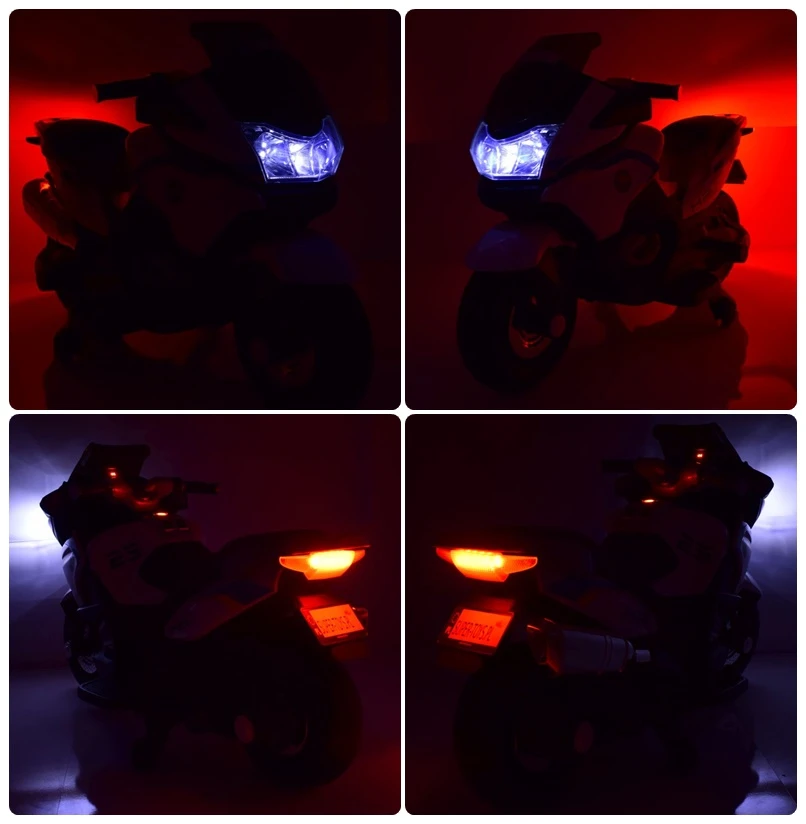 Po włączeniu dźwięki odpalania prawdziwego motocykla. W panelu wejście na USB,slot na kartę pamięci i AUX. wskaźnik naładowania akumulatora i wgrane piosenki i opowieści.