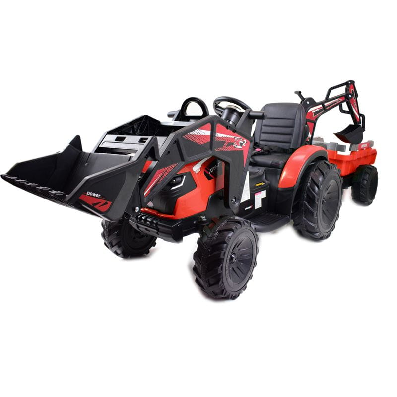 MEGA TRAKTOR Z PRZYCZEPĄ, ŁADOWARKĄ, KOPARKĄ na miękkich kołach EVA, z przyczepą napędzany dwoma mocnymi silnikami po 90W ( STRONG2) z całą pewności zainteresuje młodego wielbiciela traktorów.