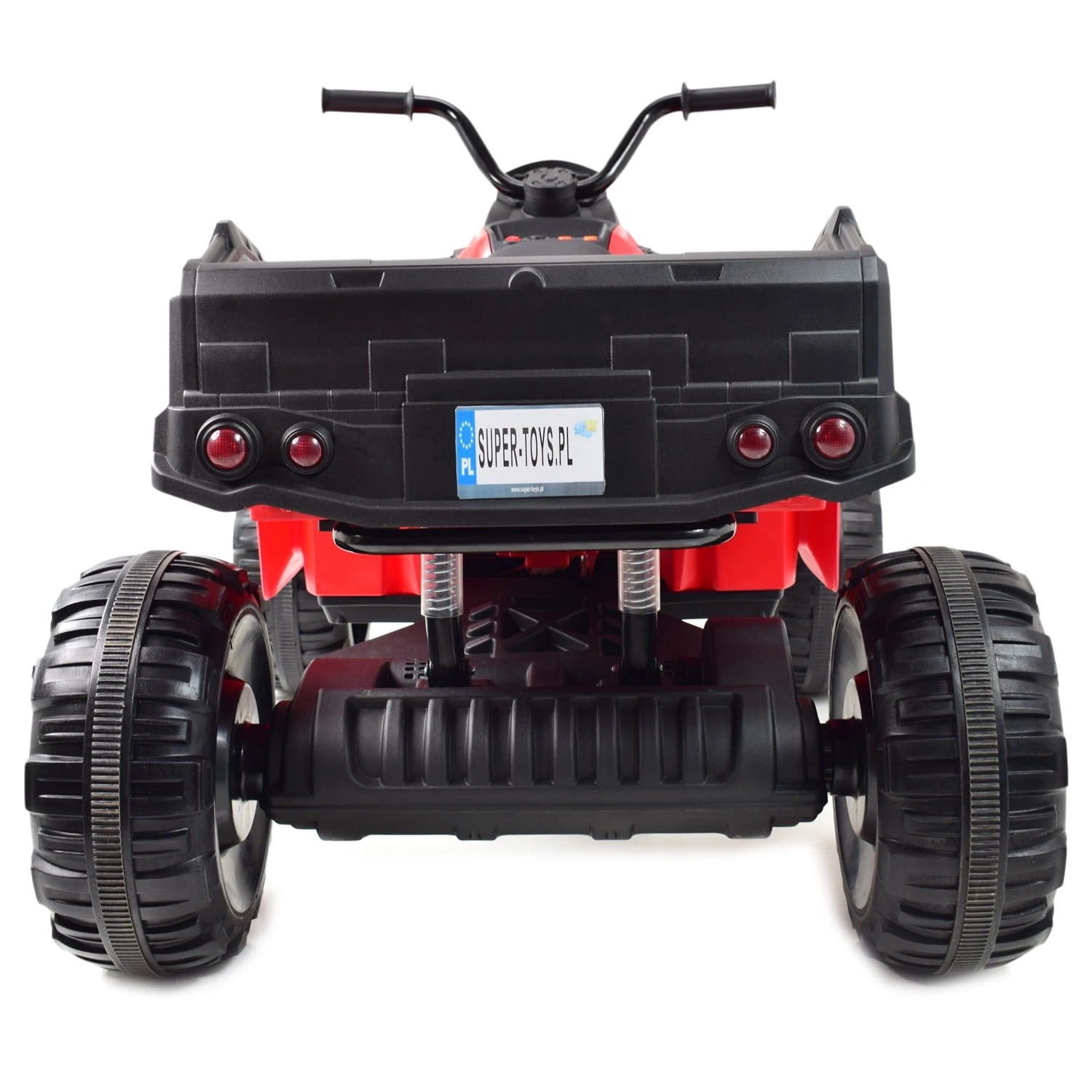 Quad posiada miękkie koła EVA zarówno z przodu jak i z tyłu, które zapewniają młodemu kierowcy pełen komfort jazdy podczas jazdy w terenie. To co czyni ten model wyjątkowym to super wytrzymała konstrukcja. Komfortu podczas jazdy dodadzą super amortyzatory .