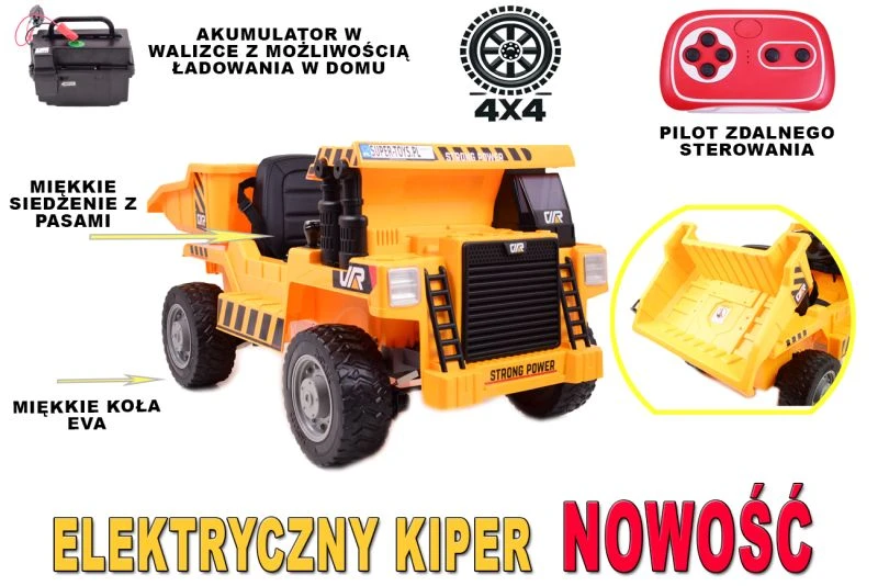 Najnowszy MEGA WYWROTKA NA AKUMULATO 4X4 Z ELEKTRYCZNYM KIPREM/JS3198 zachwyci całą pewności zainteresuje młodego wielbiciela pojadów budowlanych - napędzana jest 4 mocnymi silnikami o lącznej mocy 180 WAT STRONG2.