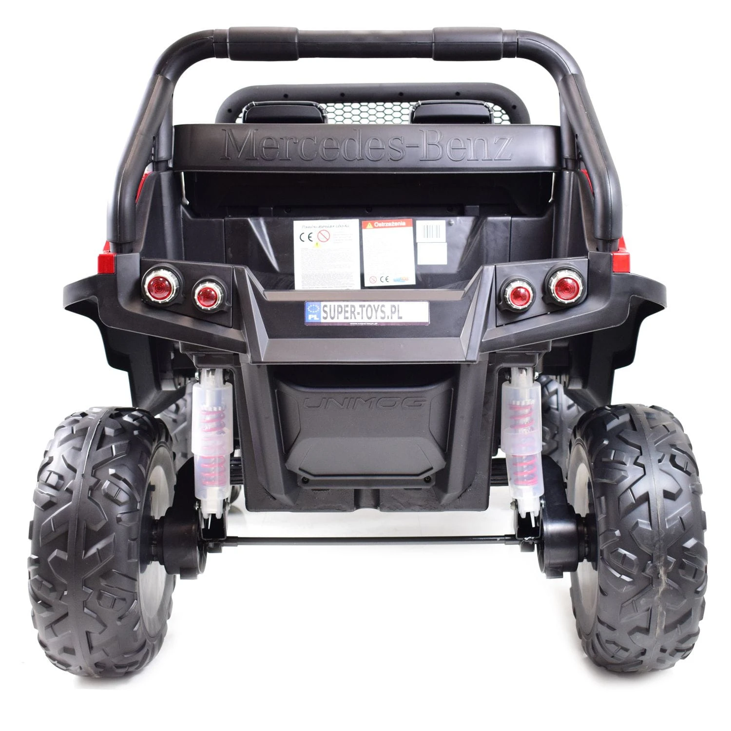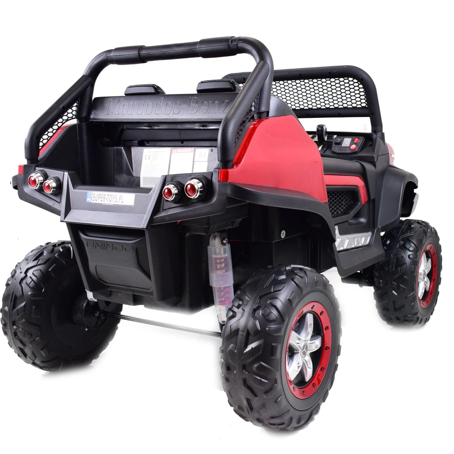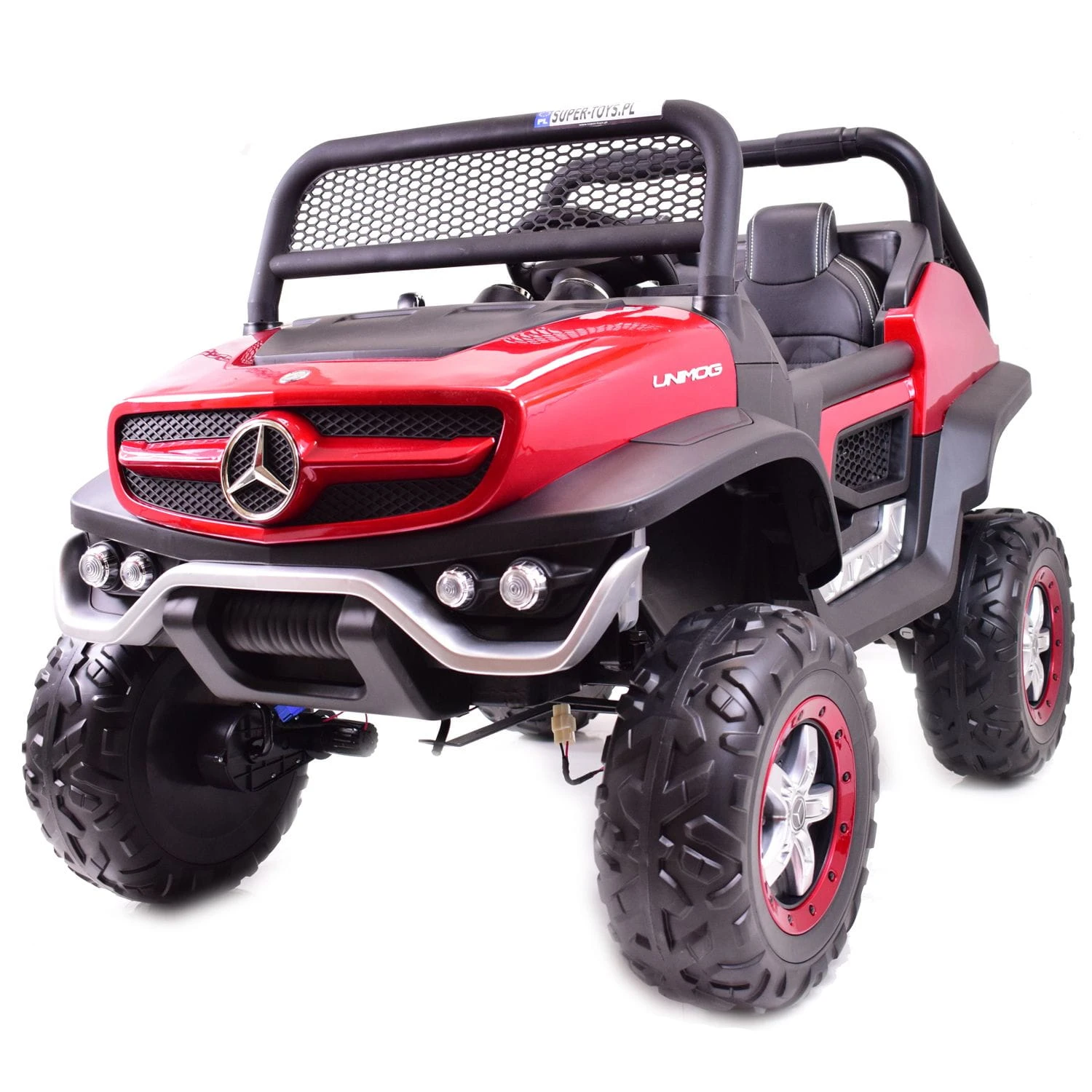 MERCEDES UNIMOG jeden z najlepiej wykonanych pojazdów na akumulator - zasilane na 12 V z napędem na 4 koła - zachwyci nie jednego przyszłego kierowcę. Dzięki zastosowanym najmocniejszym silnikom 45 W, auto jeździ po nierównym terenie bez żadnych problemów, a dodatkowo silniki te są bardzo dobrej jakości. Najciekawszą funkcją pojazdu jest NOWOCZESNY PANEL , SYSTEM WOLNEGO STARTU, AMORTYZATORY oraz SYSTEM HAMOWANIA Z PILOTA .