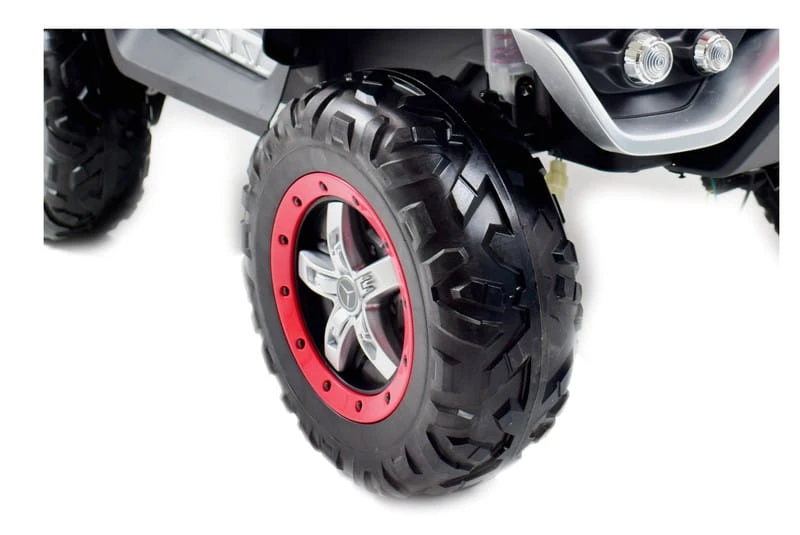 Ciekawym elementem jest oświetlenie pojazdu - świecące światła przednie i tylne, światła LED.Auto posiada amortyzatory , które zapewniają młodemu kierowcy pełen komfort jazdy podczas jazdy w terenie. Duże miękkie koła EVA.