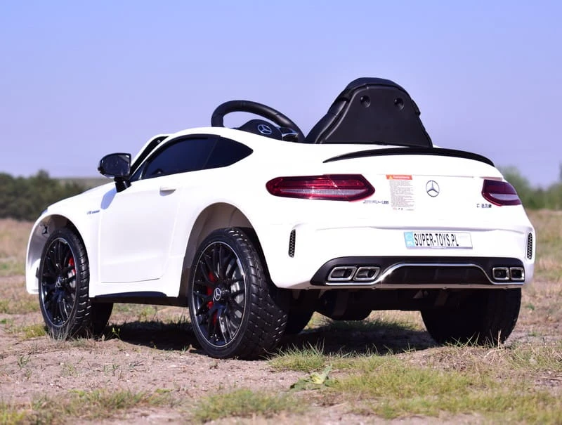 AUTO Mercedes C63 S COUPE w wersji z miękkimi kołami EVA oraz miękkim siedzeniem zasilane na 12 V z napędem na dwa koła zachwyci nie jednego przyszłego kierowcę. Dzięki zastosowanym najmocniejszym silnikom 45 W, auto jeździ po nierównym terenie bez żadnych problemów, a dodatkowo silniki te są bardzo dobrej jakości.
