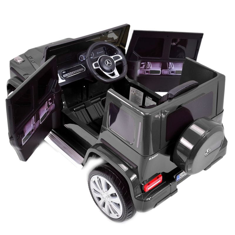 AUTO MERCEDES G500 z miękkimi koła EVA zasilane na 12 V z napędem na dwa koła zachwyci nie jednego przyszłego kierowcę. Dzięki zastosowanym najmocniejszym silnikom 45 W, auto jeździ po nierównym terenie bez żadnych problemów, a dodatkowo silniki te są bardzo dobrej jakości. Najciekawszą funkcją pojazdu są AMORTYZATORY.