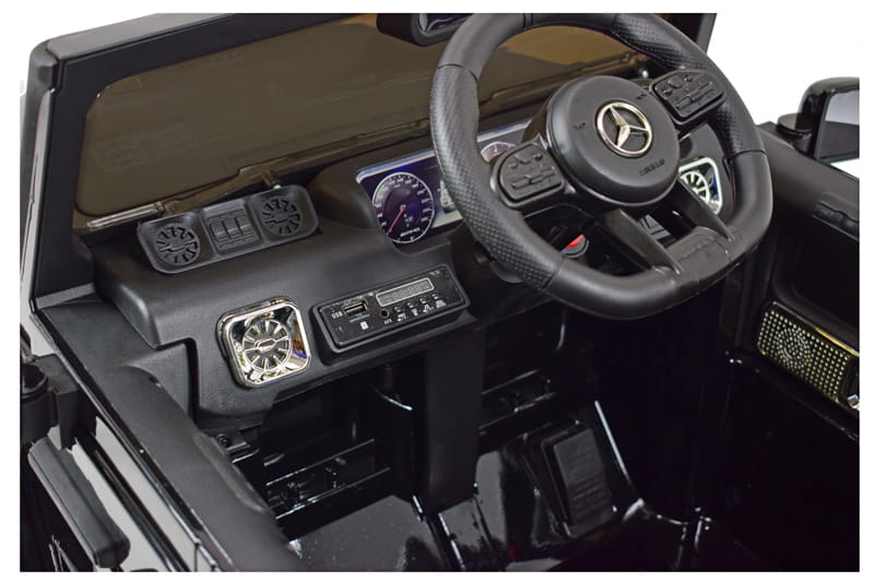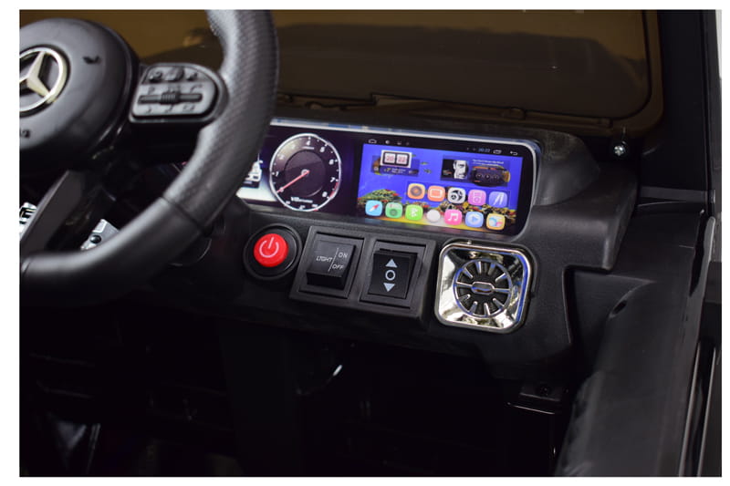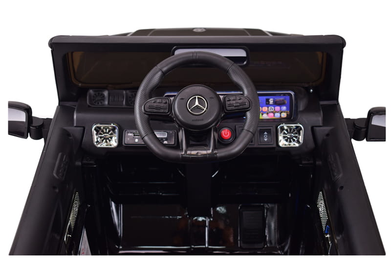 AUTO MERCEDES G63 AMG z miękkimi koła EVA zasilane na 12 V z napędem na dwa koła zachwyci nie jednego przyszłego kierowcę. Dzięki zastosowanym najmocniejszym silnikom 45 W, auto jeździ po nierównym terenie bez żadnych problemów, a dodatkowo silniki te są bardzo dobrej jakości. Najciekawszą funkcją pojazdu są AMORTYZATORY.