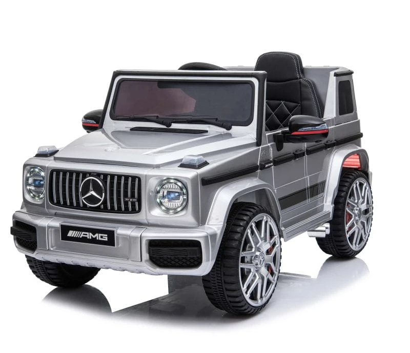 AUTO MERCEDES G63 AMG z miękkimi koła EVA zasilane na 12 V z napędem na dwa koła zachwyci nie jednego przyszłego kierowcę. Dzięki zastosowanym najmocniejszym silnikom 45 W, auto jeździ po nierównym terenie bez żadnych problemów, a dodatkowo silniki te są bardzo dobrej jakości. Najciekawszą funkcją pojazdu są AMORTYZATORY.