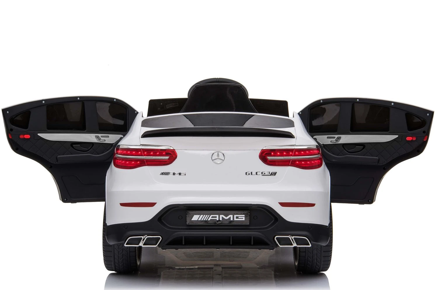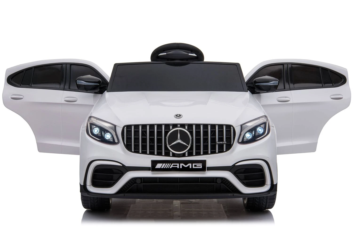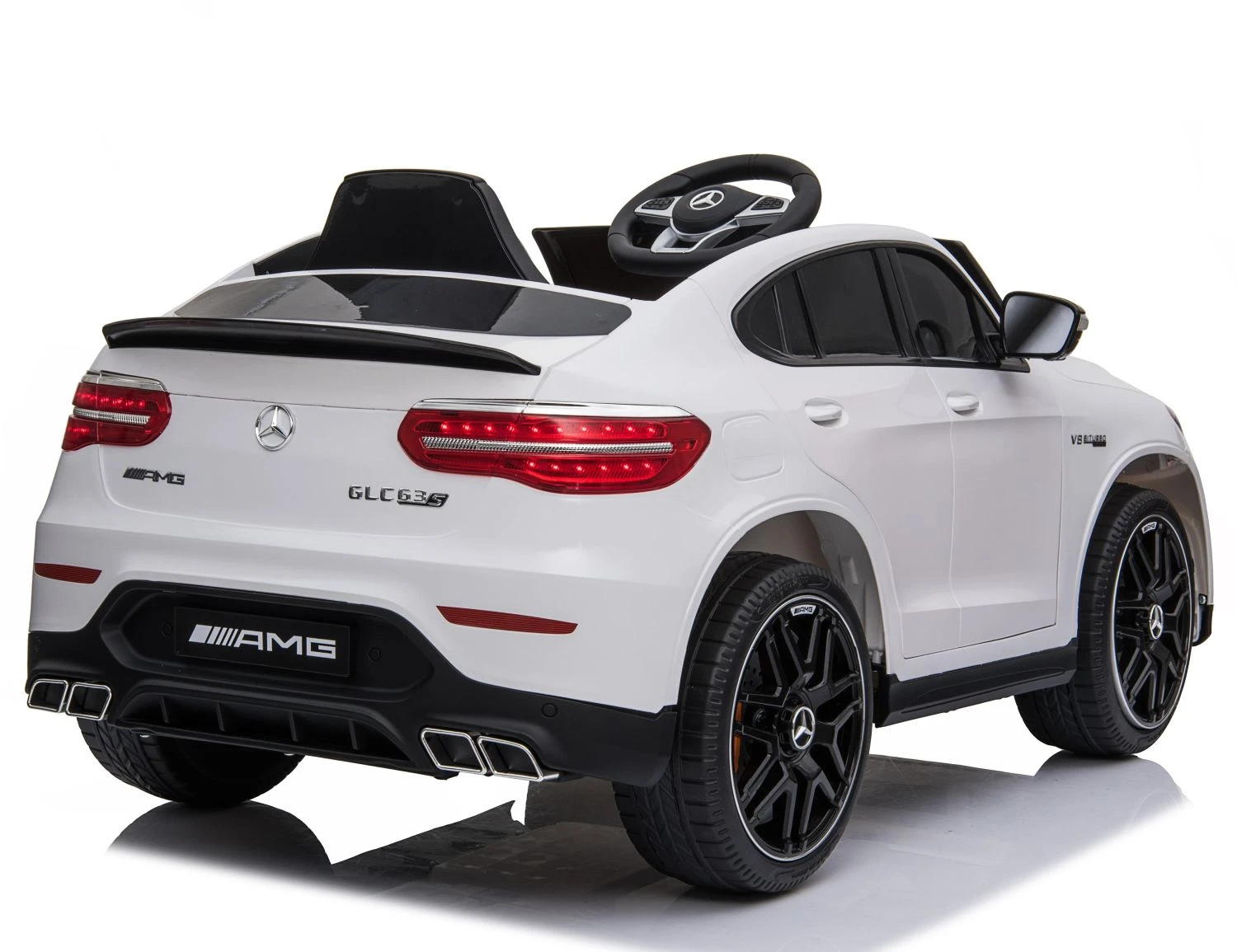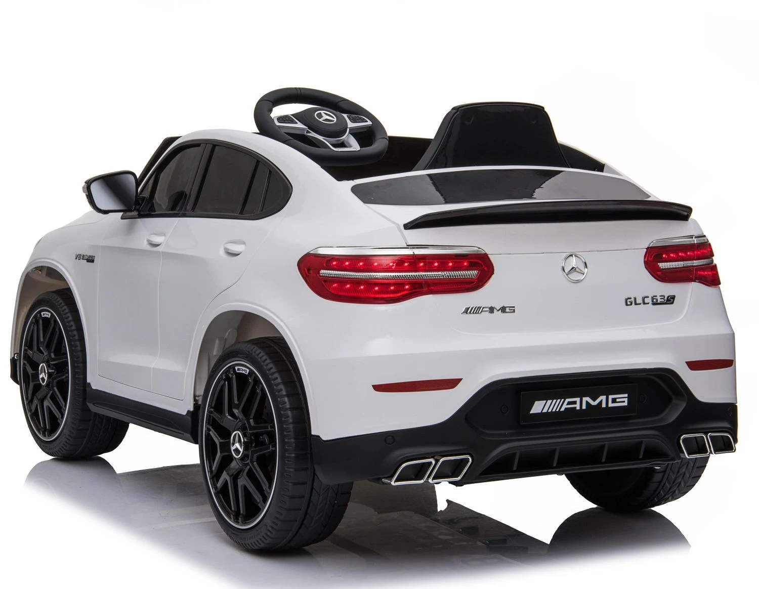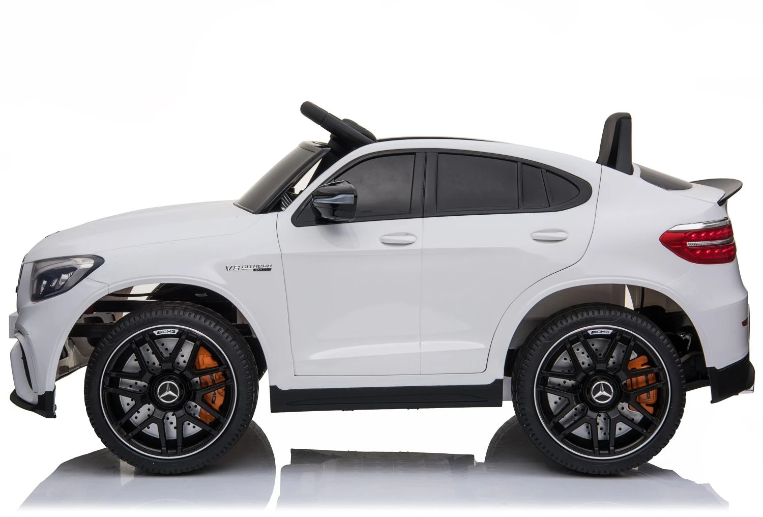 AUTO MERCEDES GLC 63S w wersji z miękkimi koła EVA zasilane na 1x12 V z napędem na dwa koła zachwyci nie jednego przyszłego kierowcę. Dzięki zastosowanym najmocniejszym silnikom 45 W, auto jeździ po nierównym terenie bez żadnych problemów, a dodatkowo silniki te są bardzo dobrej jakości. Najciekawszą funkcją pojazdu są - amortyzatory i otwierane drzwi.