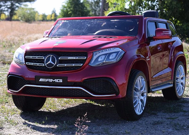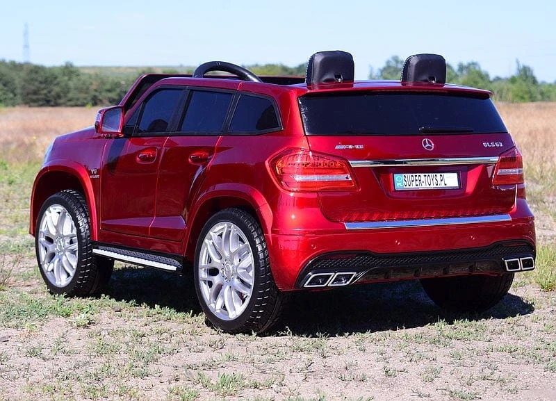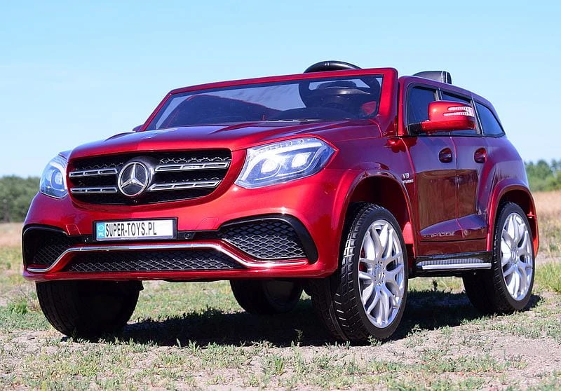 AUTO MERCEDES GLS 63 w wersji z miękkimi koła EVA napęd 4X4 zasilane na 2x 12 V z napędem na cztery koła zachwyci nie jednego przyszłego kierowcę. Dzięki zastosowanym najmocniejszym silnikom 35 W, auto jeździ po nierównym terenie bez żadnych problemów, a dodatkowo silniki te są bardzo dobrej jakości. Najciekawszą funkcją pojazdu są - AMORTYZATORY oraz napęd pojazdy na 4 koła.
