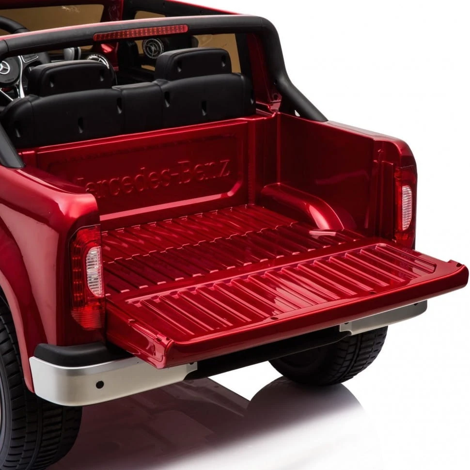 AUTO MERCEDES X w wersji lakierowanej z miękkimi koła EVA zasilane na 2x12 V z napędem na dwa koła zachwyci nie jednego przyszłego kierowcę. Dzięki zastosowanym najmocniejszym silnikom 45 W, auto jeździ po nierównym terenie bez żadnych problemów, a dodatkowo silniki te są bardzo dobrej jakości. Najciekawszą funkcją pojazdu są - AMORTYZATORY, OTWIERANA TYLNA BURTA I DRZWI.