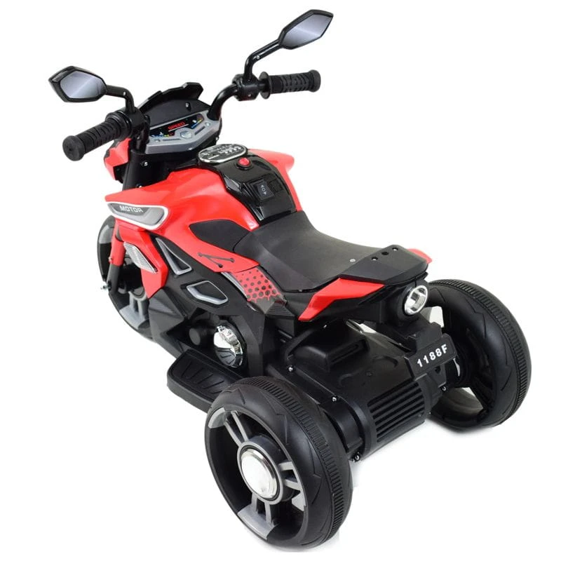 Panel z dźwiękami ( dźwięki odpalania motocykla) z wejściem USB i AUX i oświetlenie pojazdu umili o urazmaici zabawą.