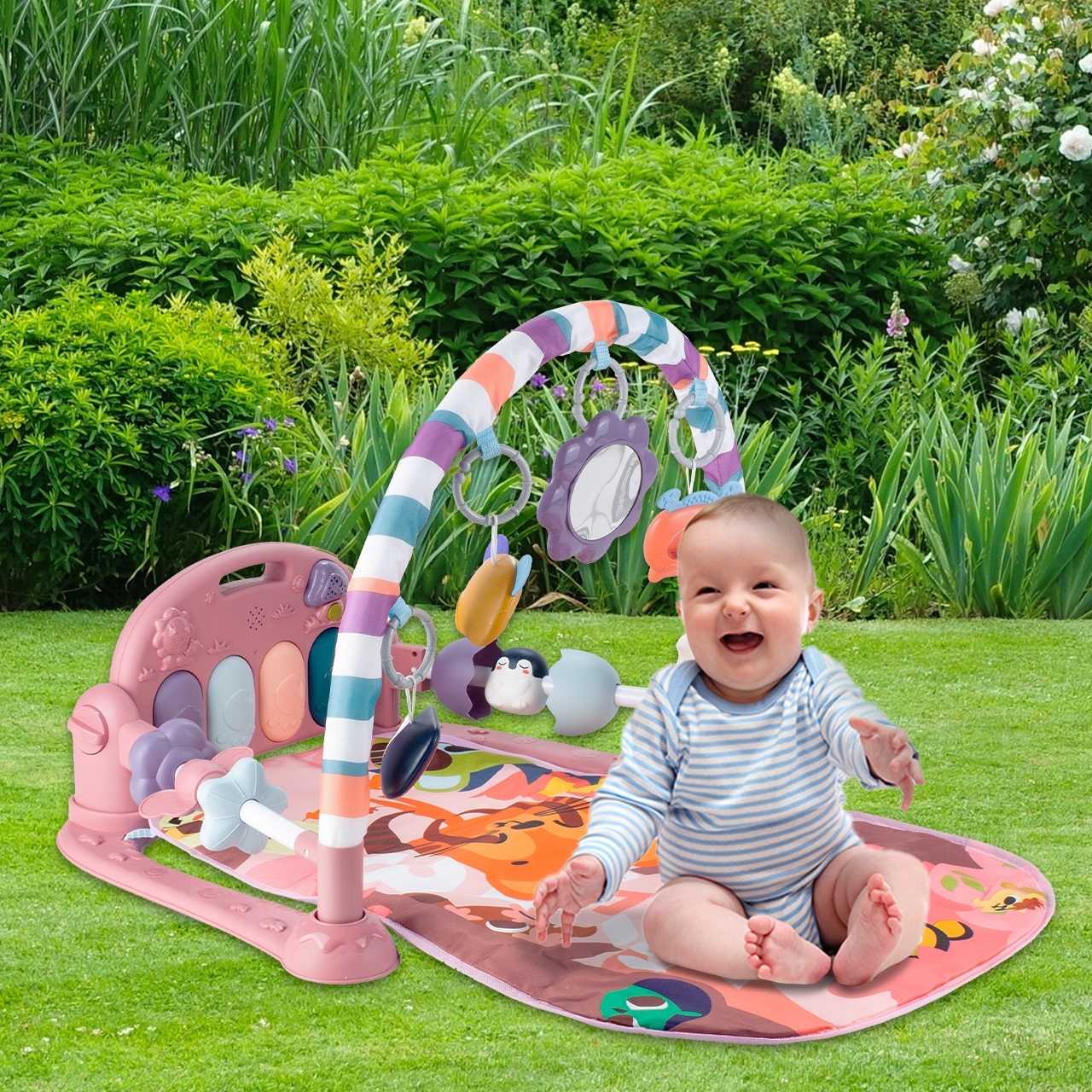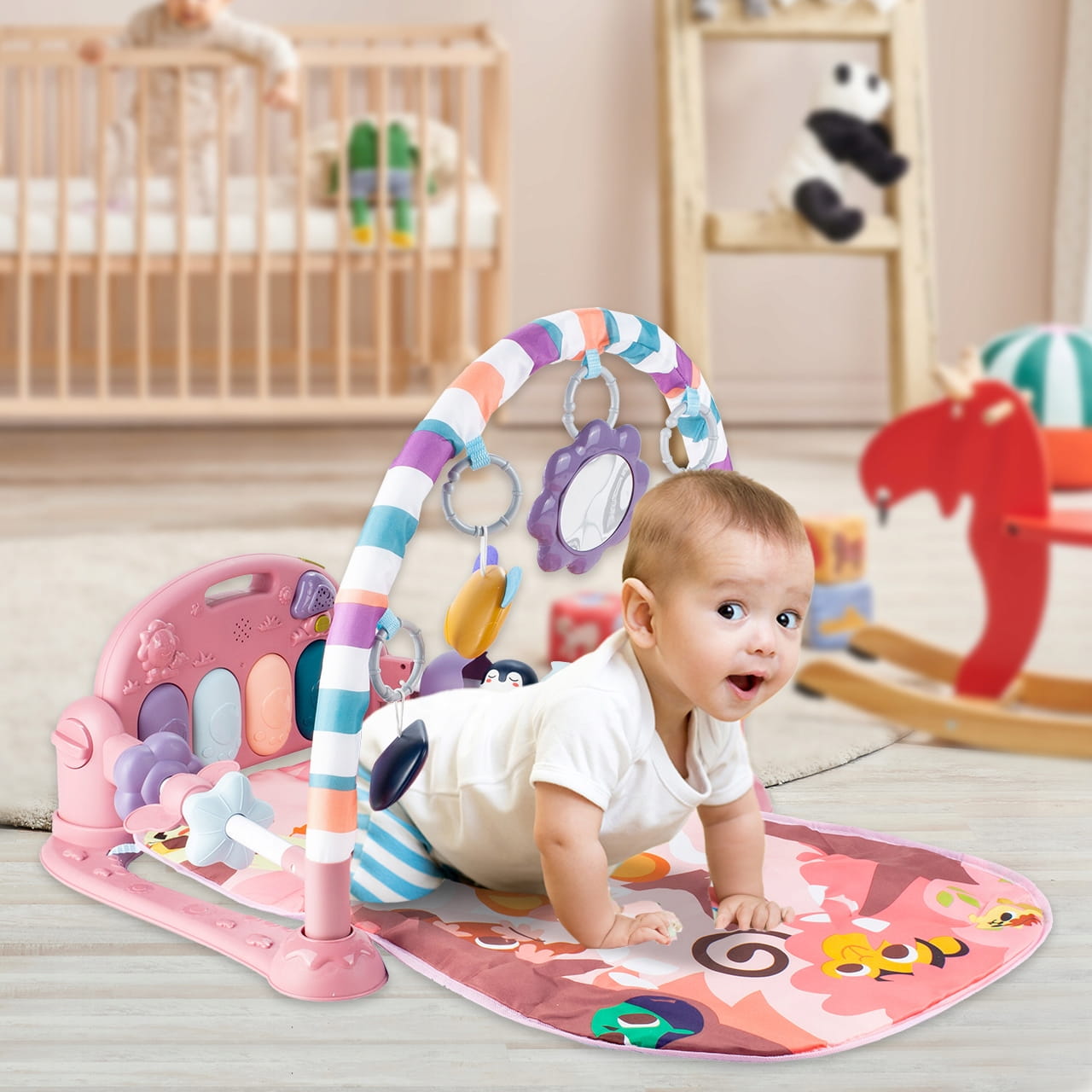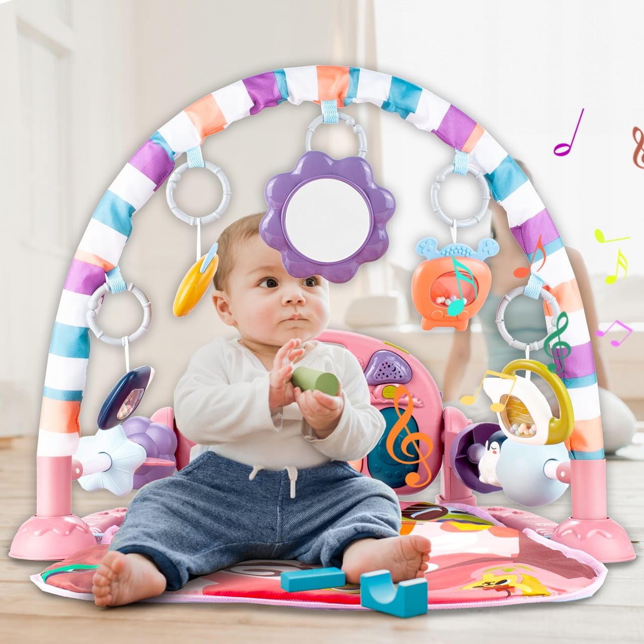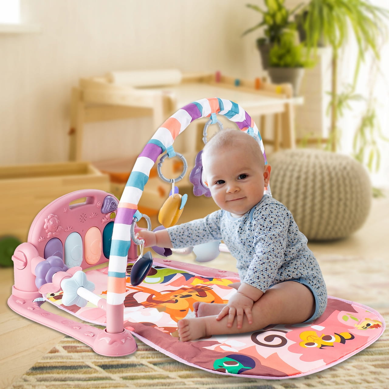 Miękka podstawa, kolorowe zawieszki i pianinko z melodiami pobudzają zmysły, motorykę i ciekawość dziecka już od pierwszych miesięcy życia.