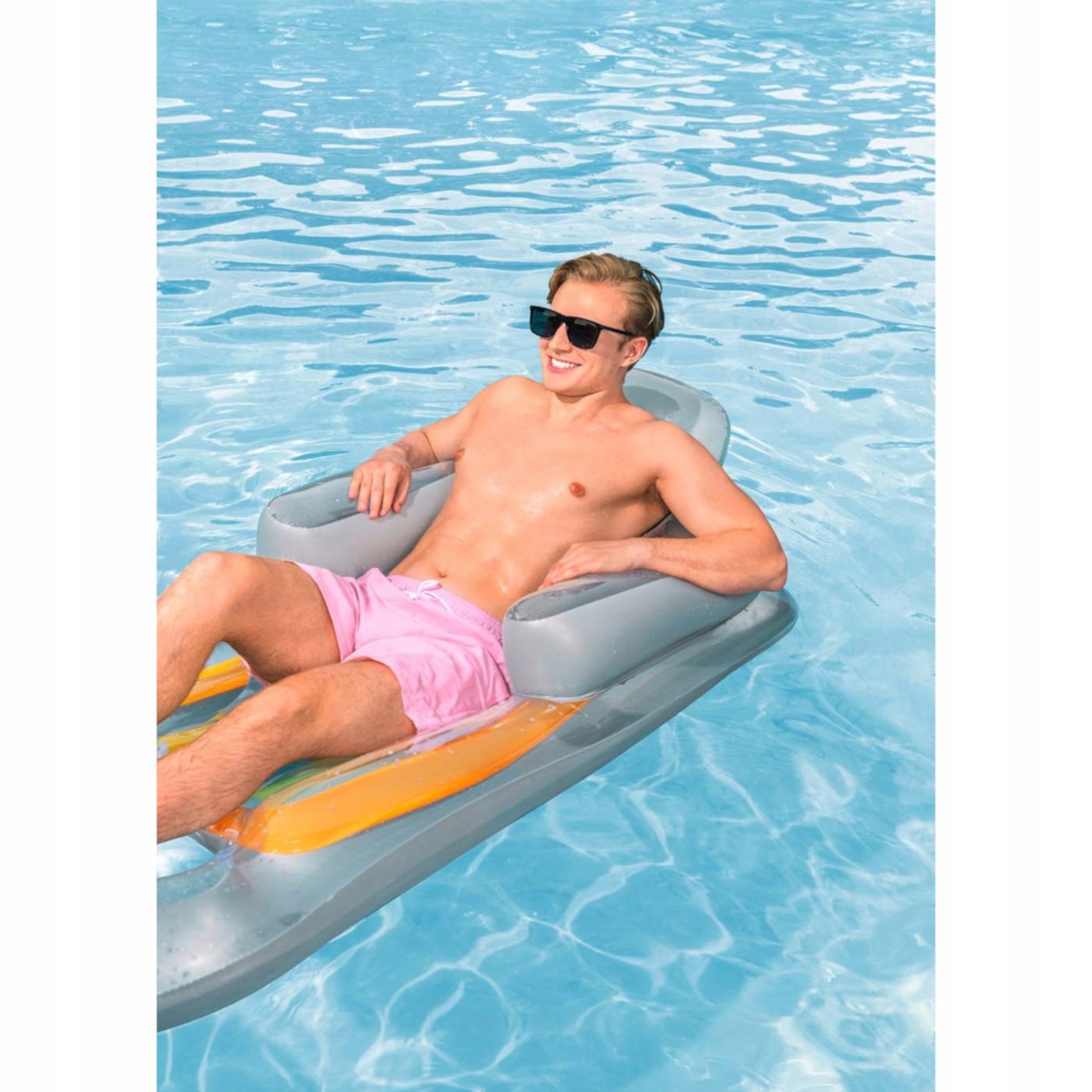 Nadmuchiwany materac świetnie sprawdzi się na wakacjach nad wodą, zarówno nad morzem czy jeziorem, ale także na basenie. Można skorzystać z niego nawet we własnym ogrodzie w upalne letnie dni. Dodatkowy komfort zapewnia duże dmuchane oparcie. Materac o pływania zapewnia wygodny odpoczynek, a dodatkową stabilność zapewnia dwukomorowa konstrukcja, umożliwiająca równomierne napompowanie. Wykonany jest z wytrzymałego materiału PCV, a w razie uszkodzenia, do zestawu dołączona jest łatka naprawcza. Nienapompowany materac zajmuje mało miejsca, dzięki czemu łatwo zabrać go w każde miejsce.