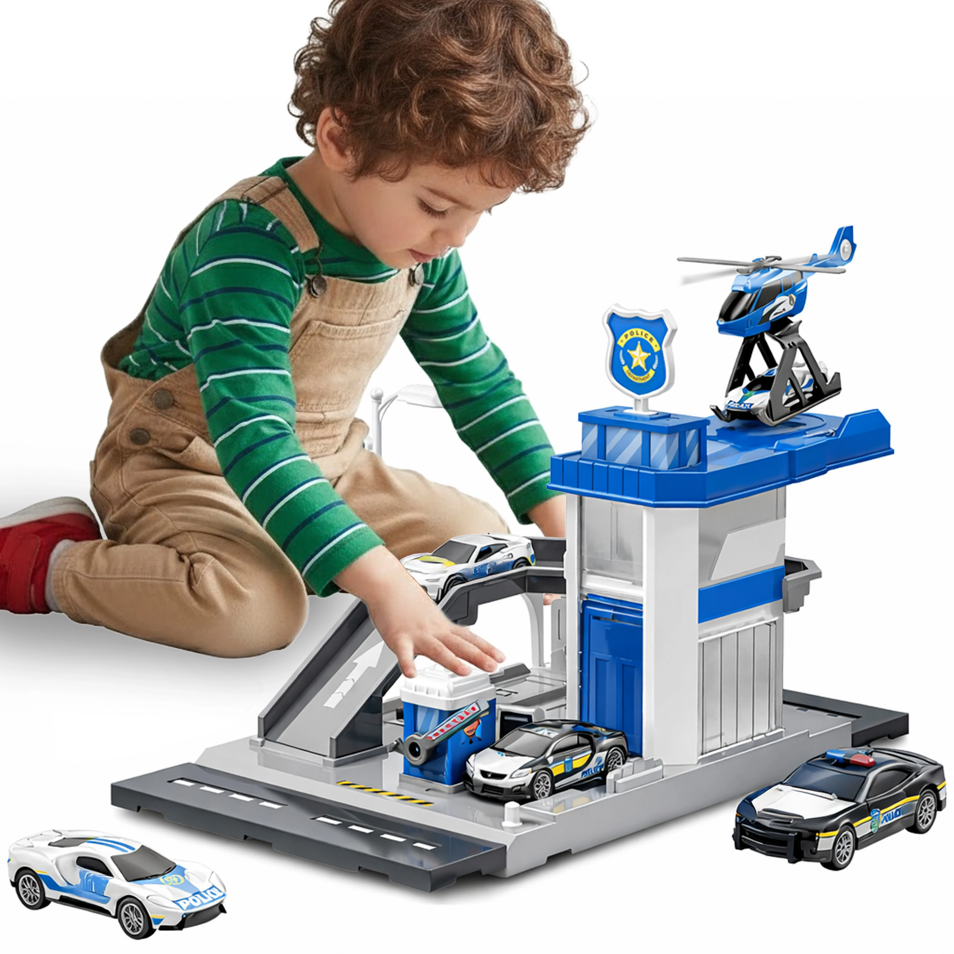 Przenieś emocjonujący świat służb ratunkowych prosto do pokoju Twojego dziecka! Ten wielofunkcyjny posterunek policji to 24-elementowy zestaw, który łączy w sobie radość z budowania (DIY) oraz dynamiczną zabawę autkami. Dzięki rampom, ruchomym elementom i flocie pojazdów, każdy mały stróż prawa znajdzie tu pole do popisu dla swojej wyobraźni.