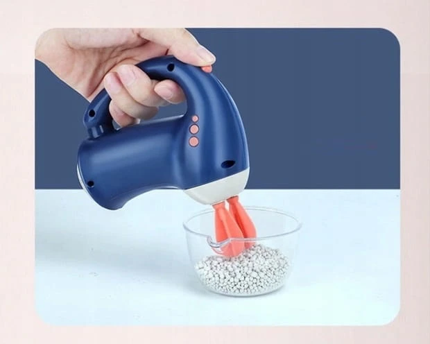 Mikser pracuje jak prawdziwy, ma obrotowe mieszadełka.