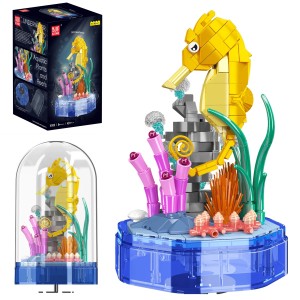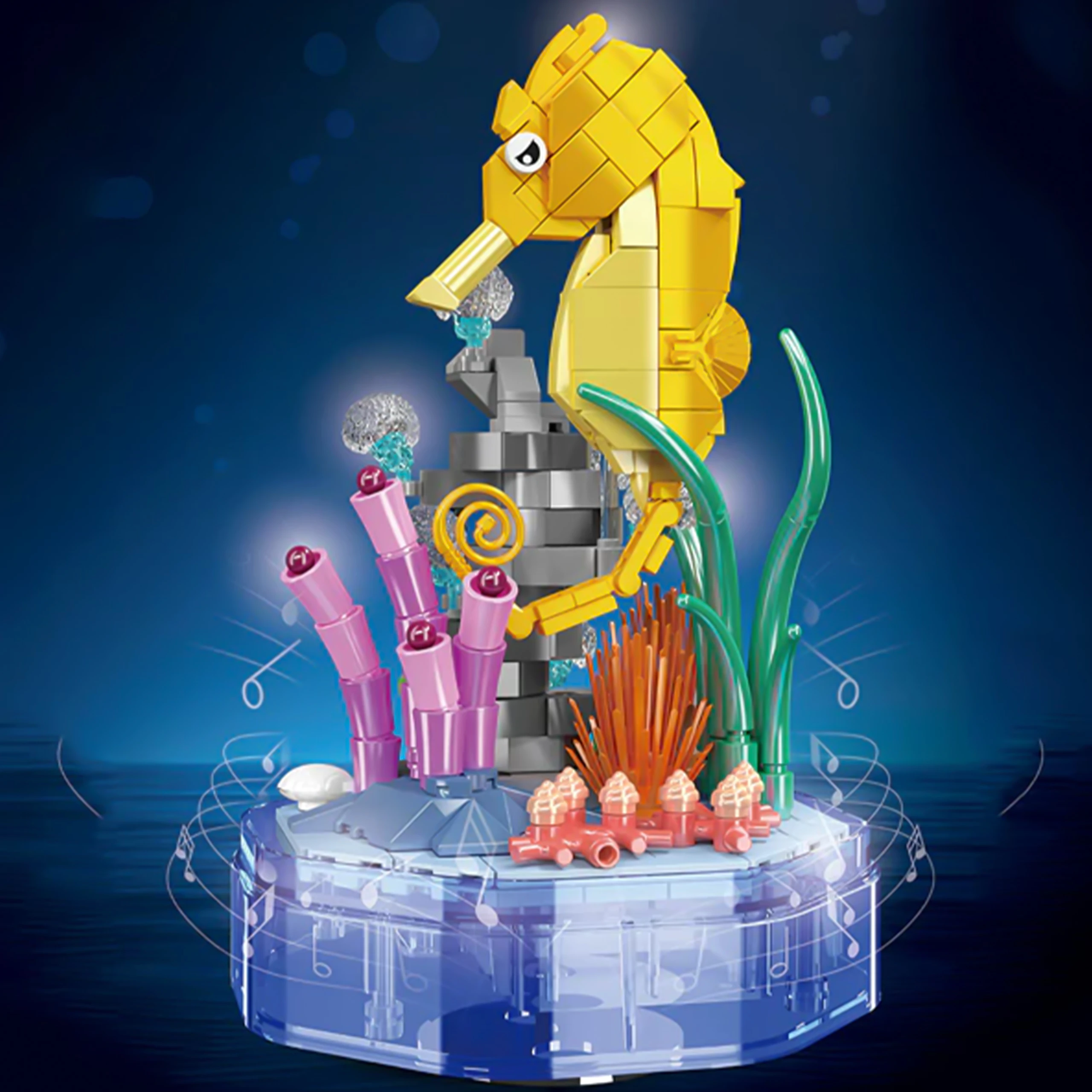 To zestaw klocków, z których zbudujesz pozytywkę z konikiem morskim. Po złożeniu, pozytywka gra melodię i świeci, tworząc piękną podwodną scenę.