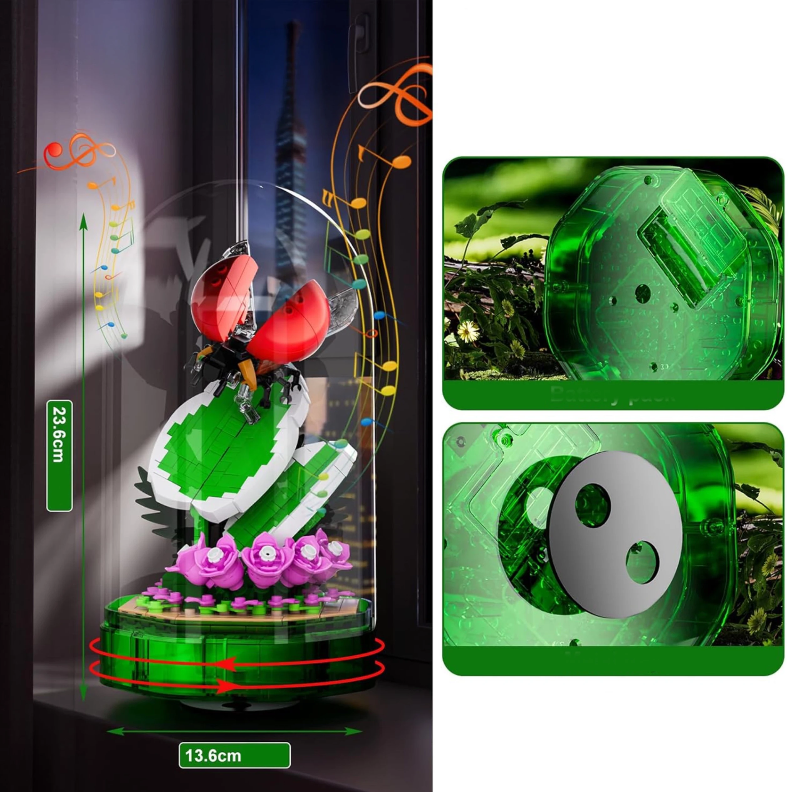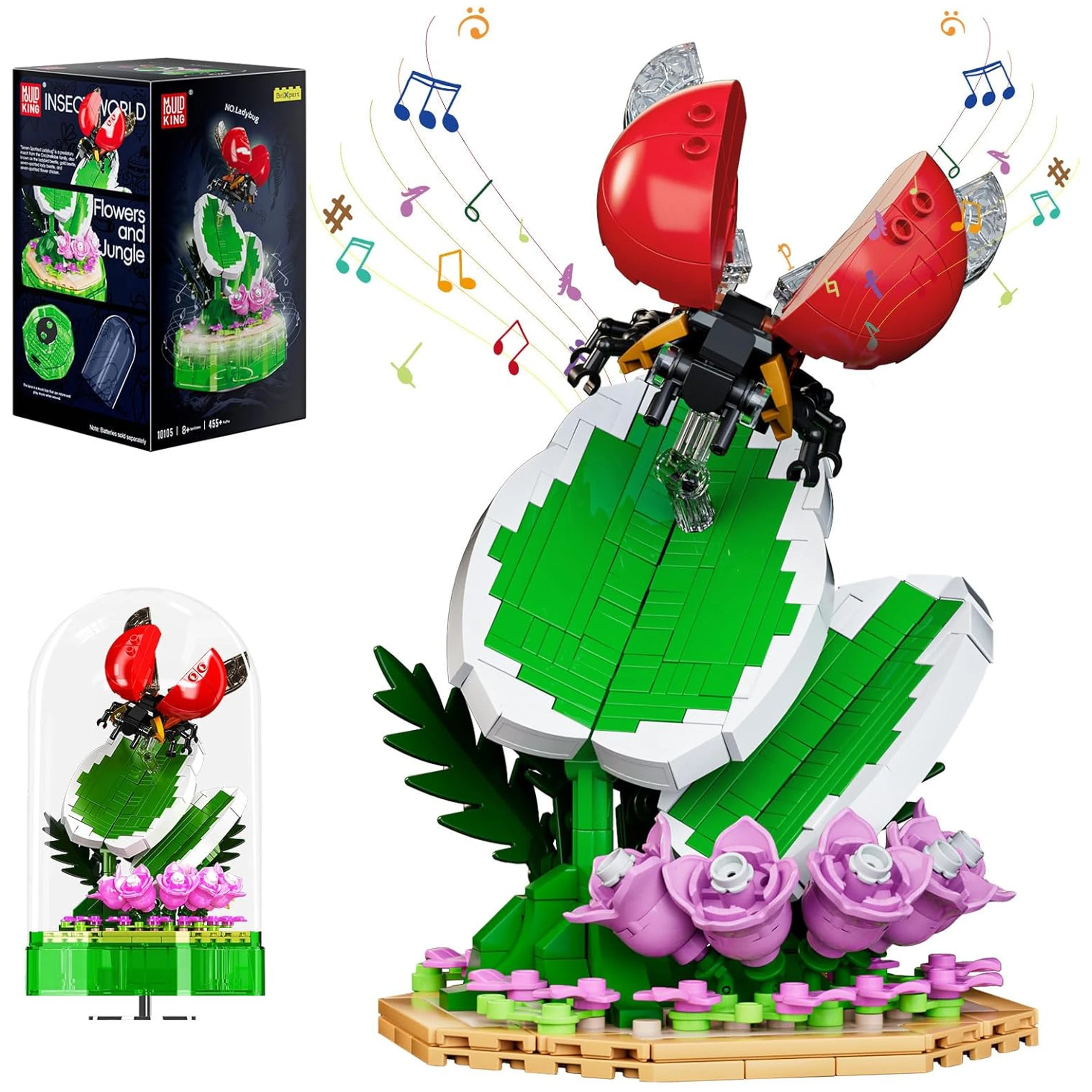 Pozytywka z Biedronką – Mould King 10105, 455 Klocków, Świecąca Dekoracja z Melodią dla Miłośników Natury