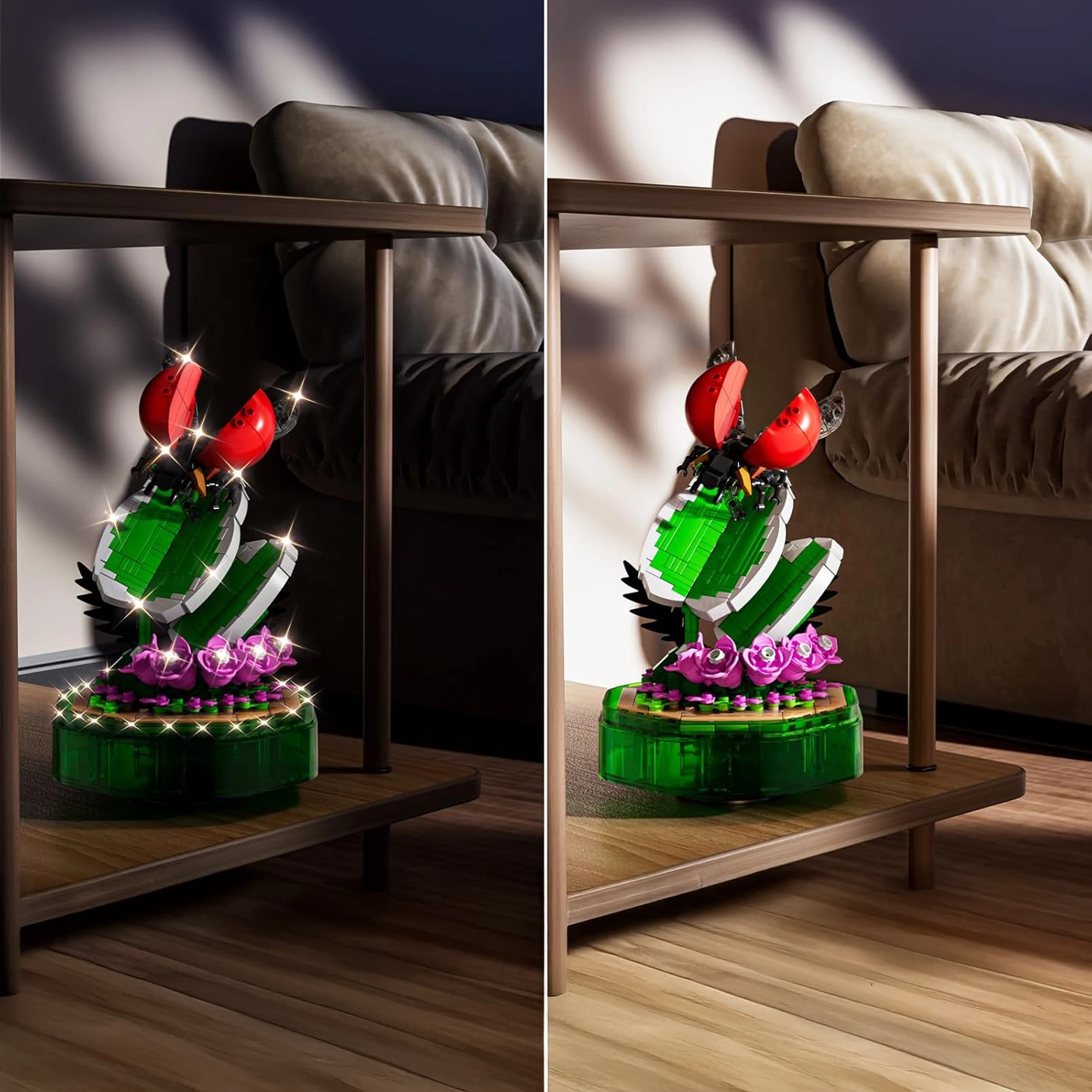 Ten zestaw to coś więcej niż zwykła zabawka; to piękna dekoracja, którą można umieścić w pokoju, aby dodać przytulnej atmosfery dzięki emitowanemu przez nią oświetleniu i melodii. Jest przeznaczony dla dzieci w wieku od 8 lat, a także dla dorosłych, którzy doceniają estetykę projektu.