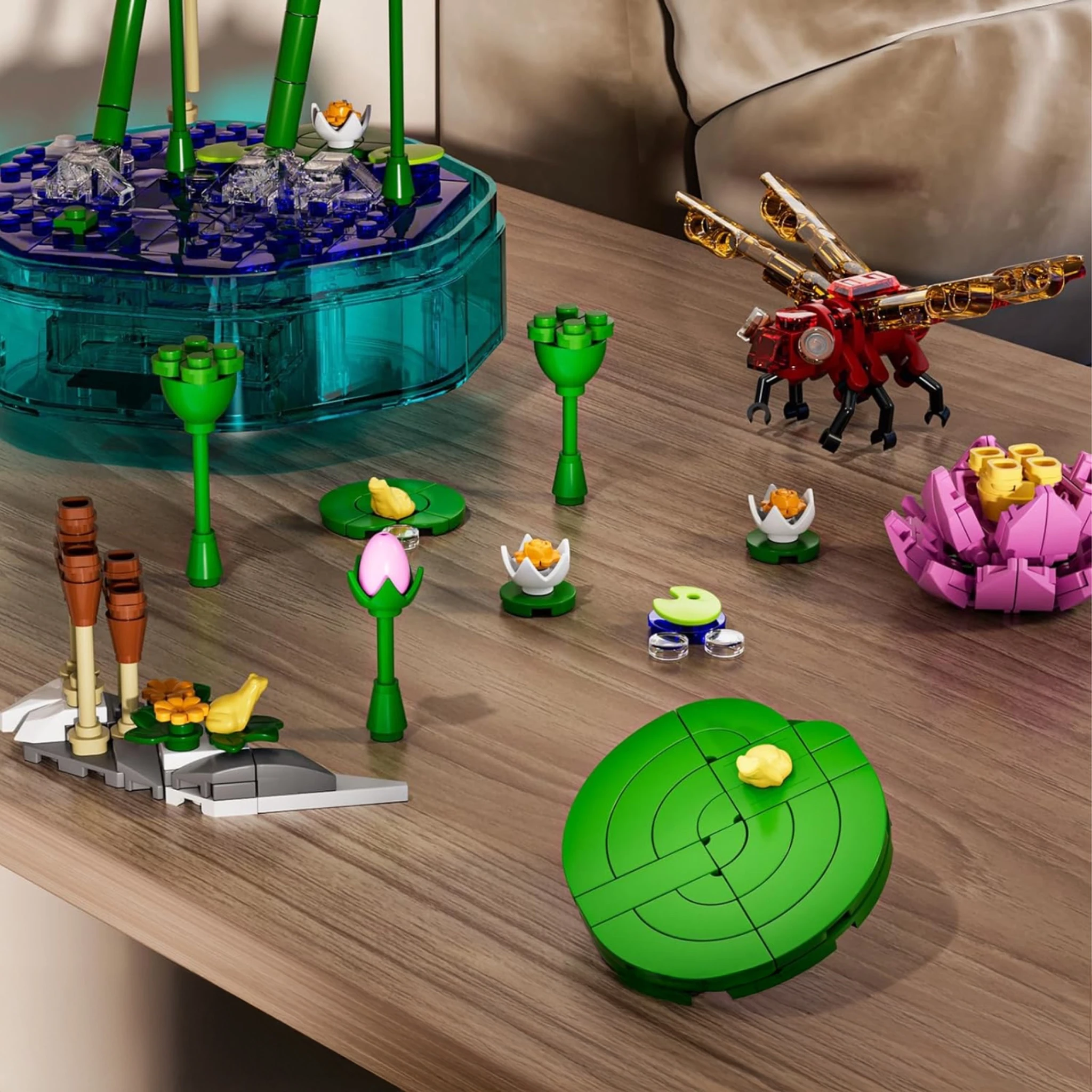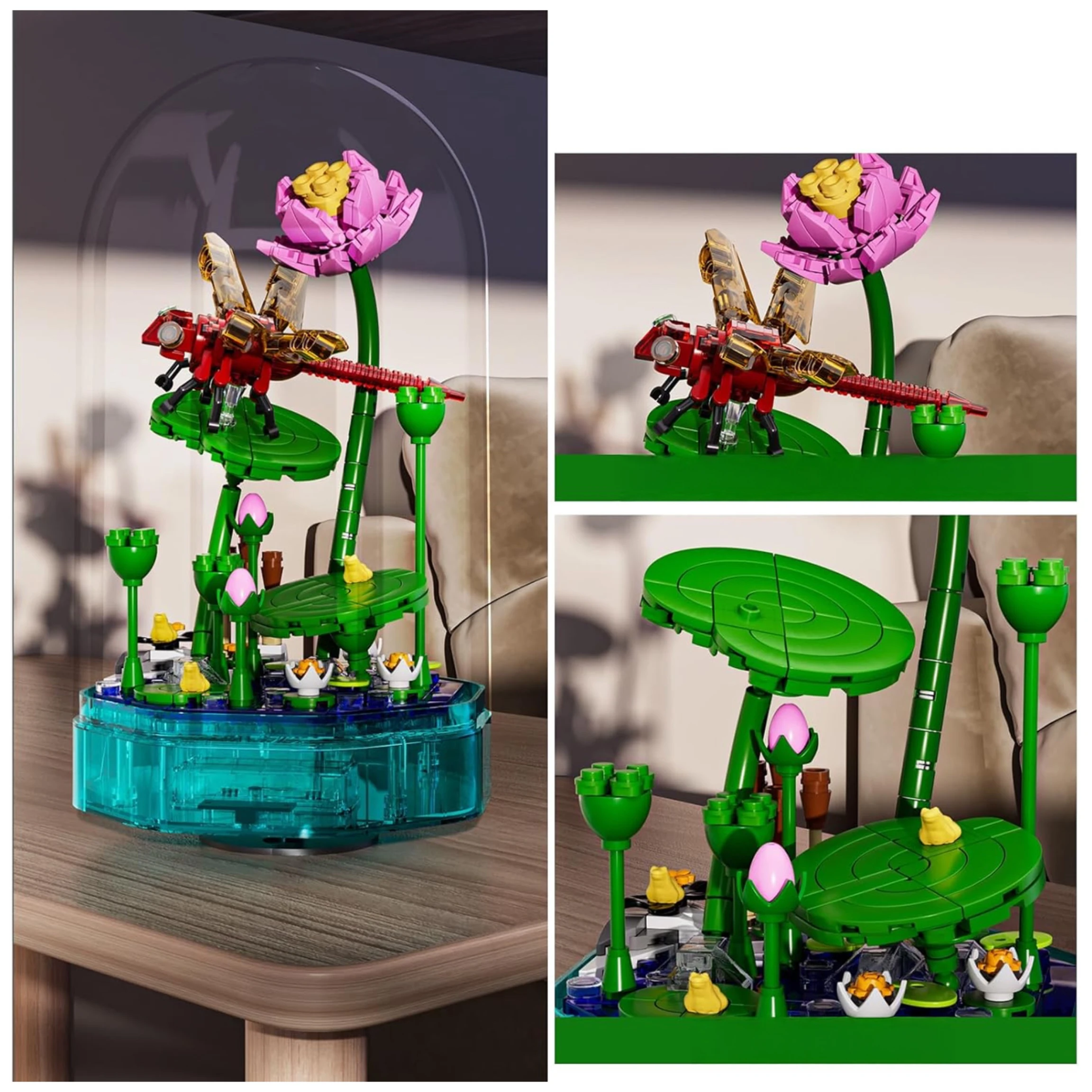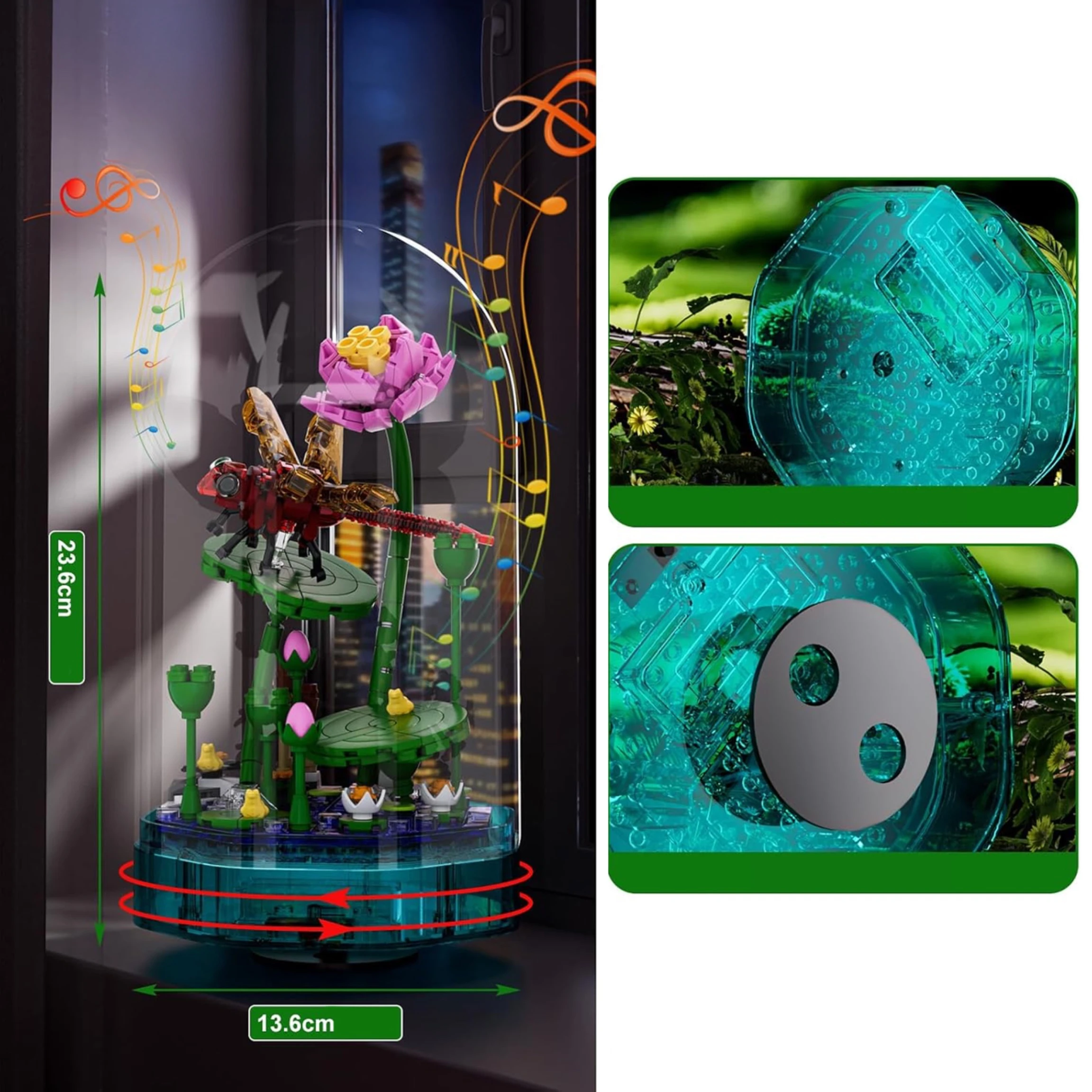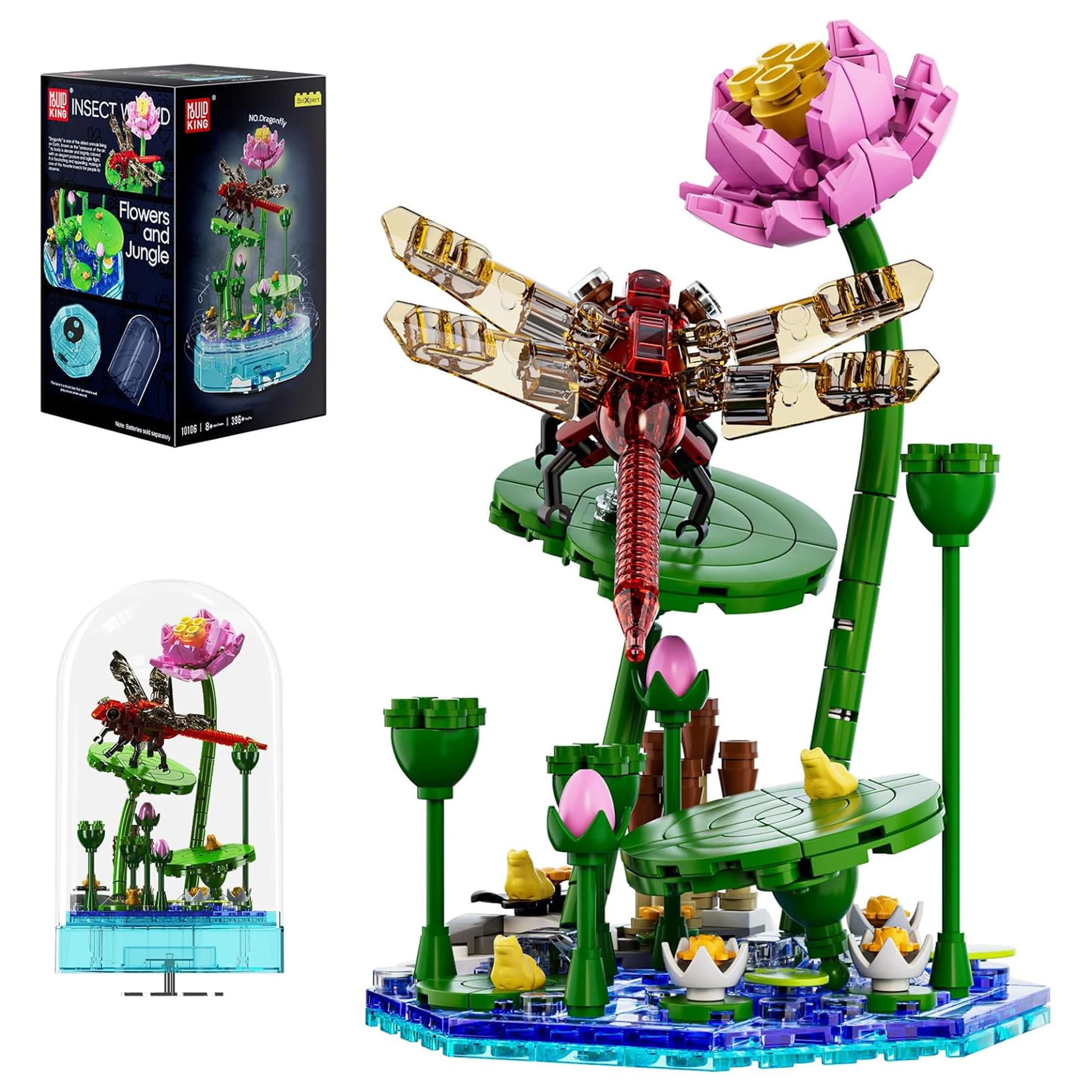 Pozytywka z Ważką – Mould King 10106 LED z Melodią, Dekoracyjny Zestaw Klocków z Liściem i Kopułą