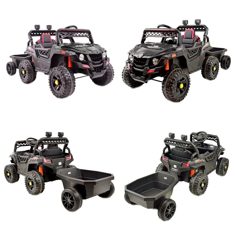 BUGGY Z PRZYCZEPĄ ZASILANY AKUMULATOREM 0929-AL zachwyci całą pewności zainteresuje młodego wielbiciela aut tego rodzaju. Napędzane jest dwoma mocnymi silnikami STRONG2.