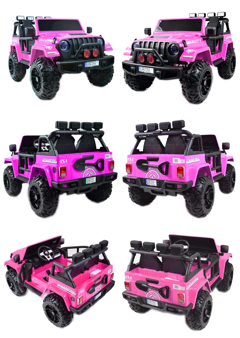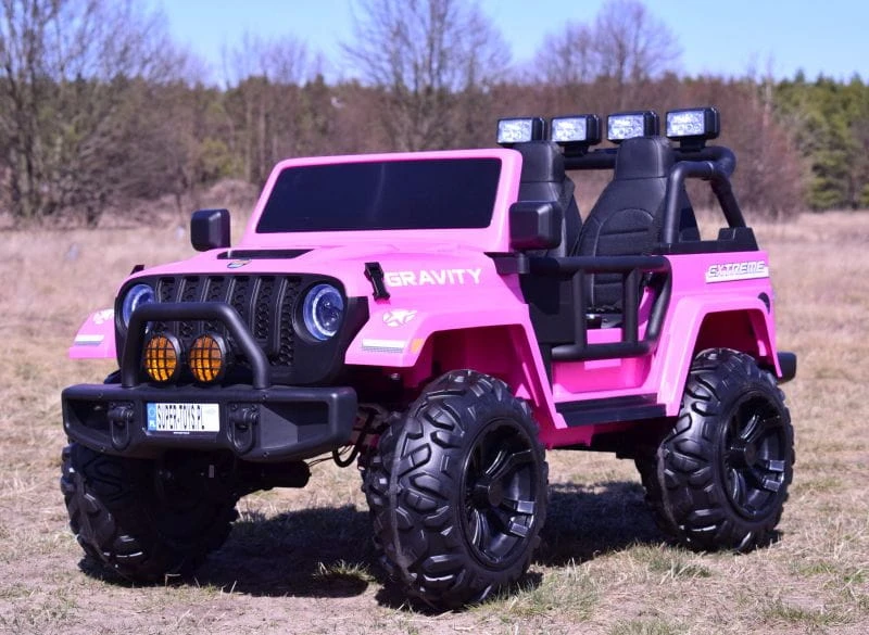 NAJWIĘKSZY JEEP GRAVITY 4X4 DLA 2 DZIECI z pełnej wersji napędzany czterema mocnymi silnikami 45 W, z całą pewności zainteresuje młodego wielbiciela jazdy po terenie.