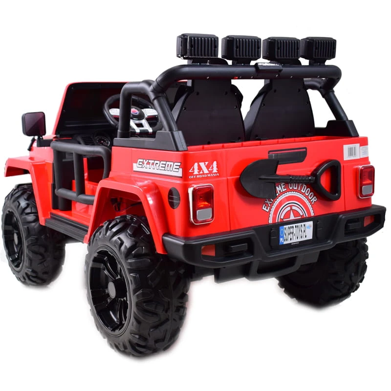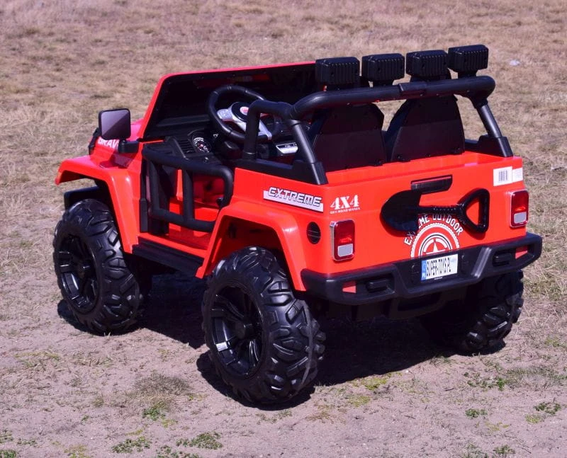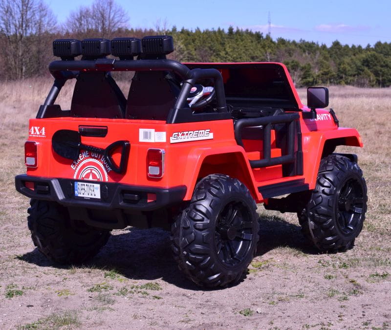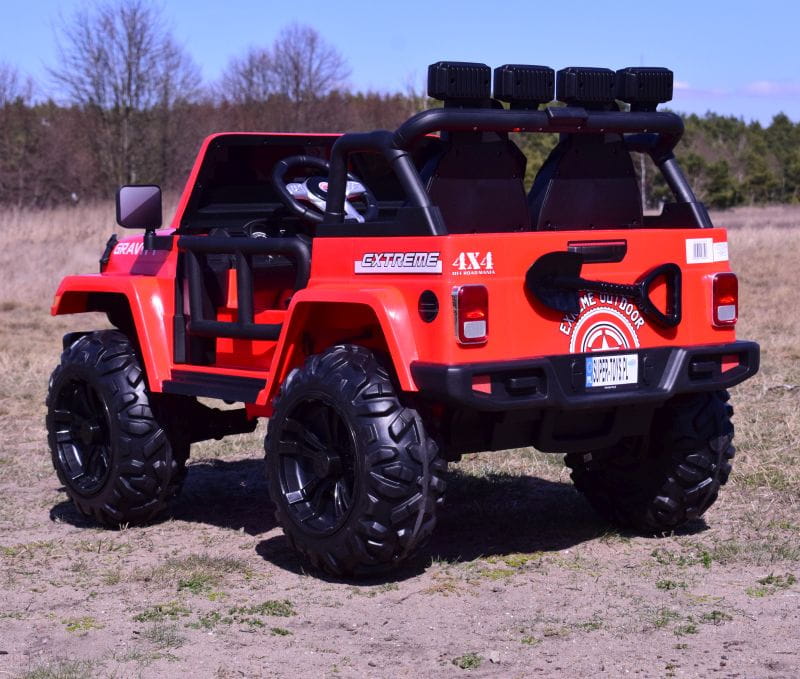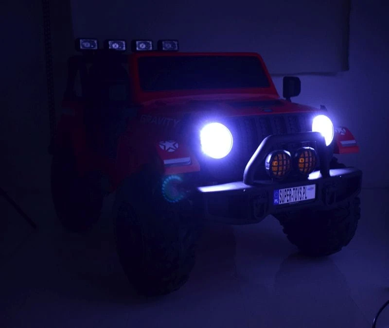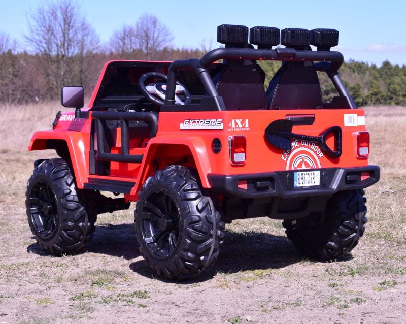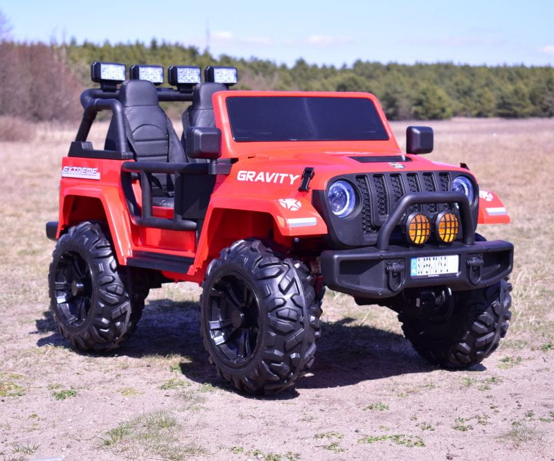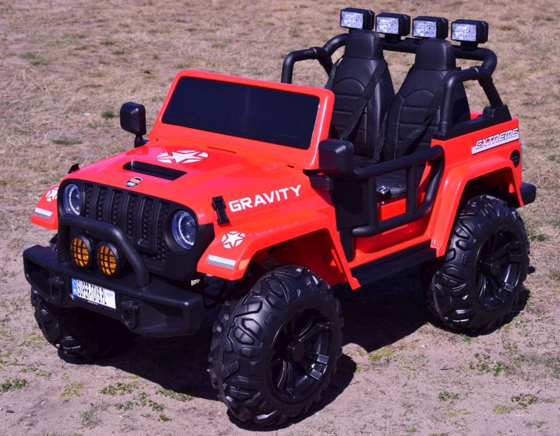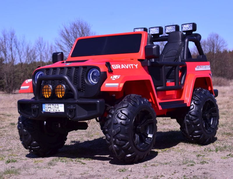 NAJWIĘKSZY JEEP GRAVITY 4X4 DLA 2 DZIECI z pełnej wersji napędzany czterema mocnymi silnikami 45 W, z całą pewności zainteresuje młodego wielbiciela jazdy po terenie.