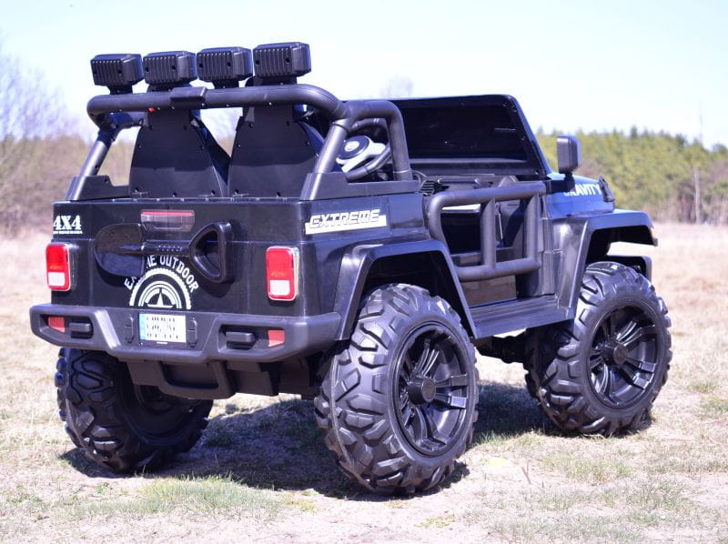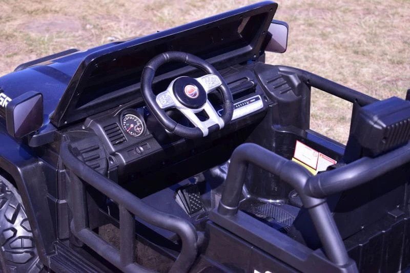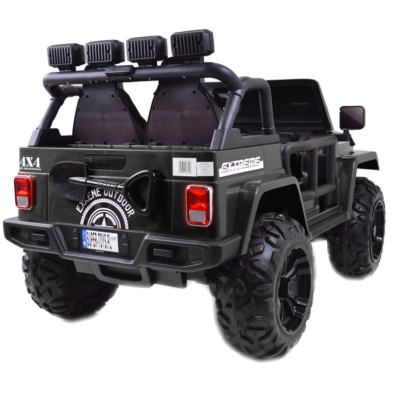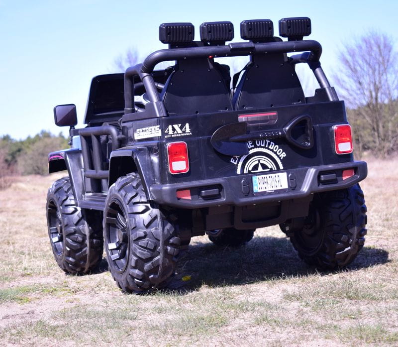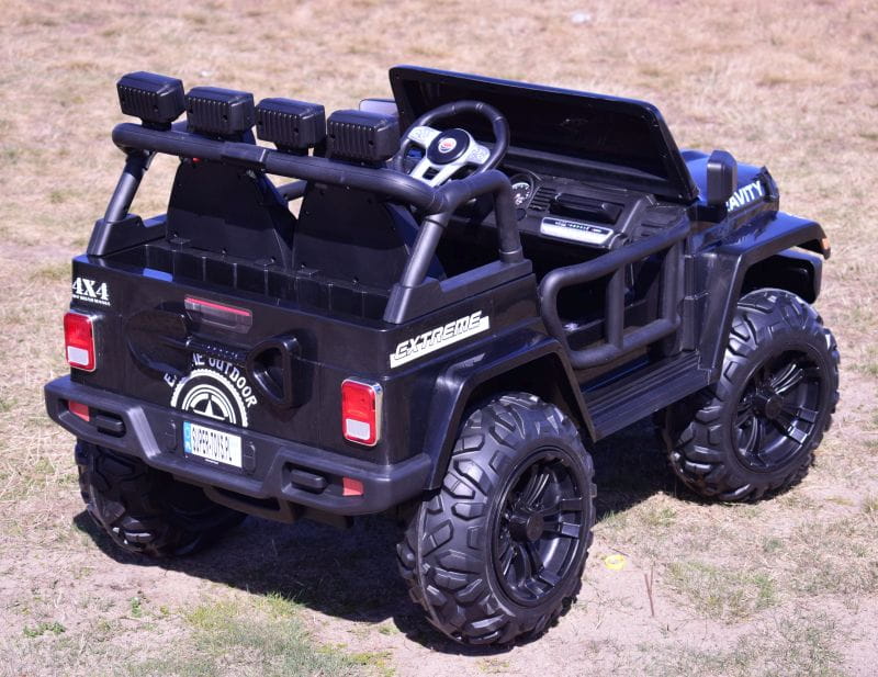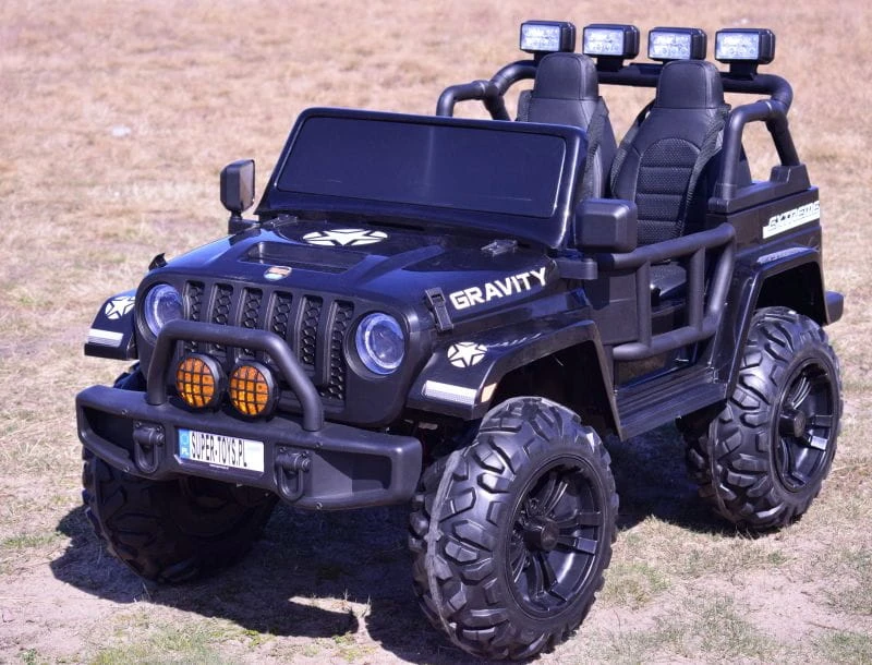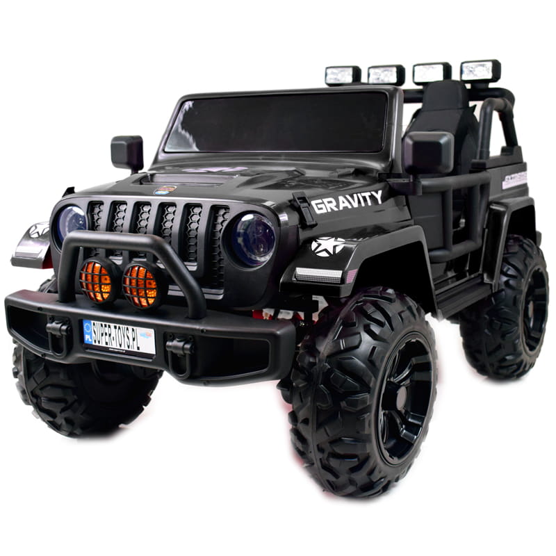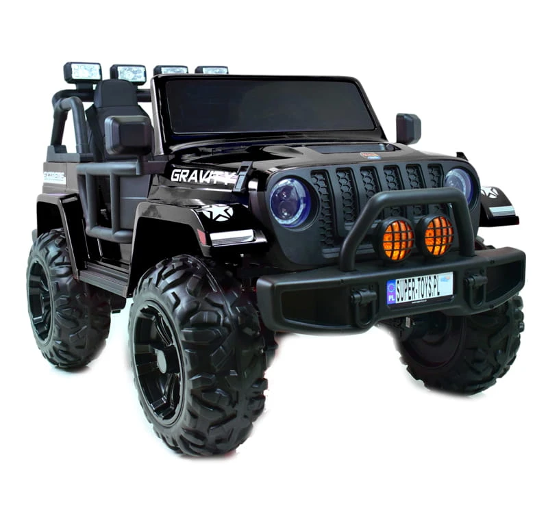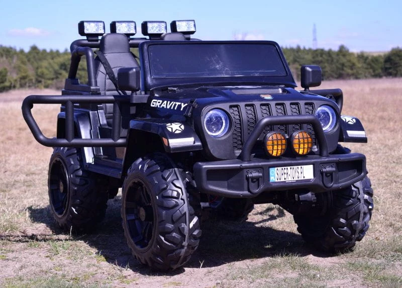 NAJWIĘKSZY JEEP GRAVITY 4X4 24 V DLA 2 DZIECI z pełnej wersji napędzany czterema mocnymi silnikami 45 W, z całą pewności zainteresuje młodego wielbiciela jazdy po terenie.