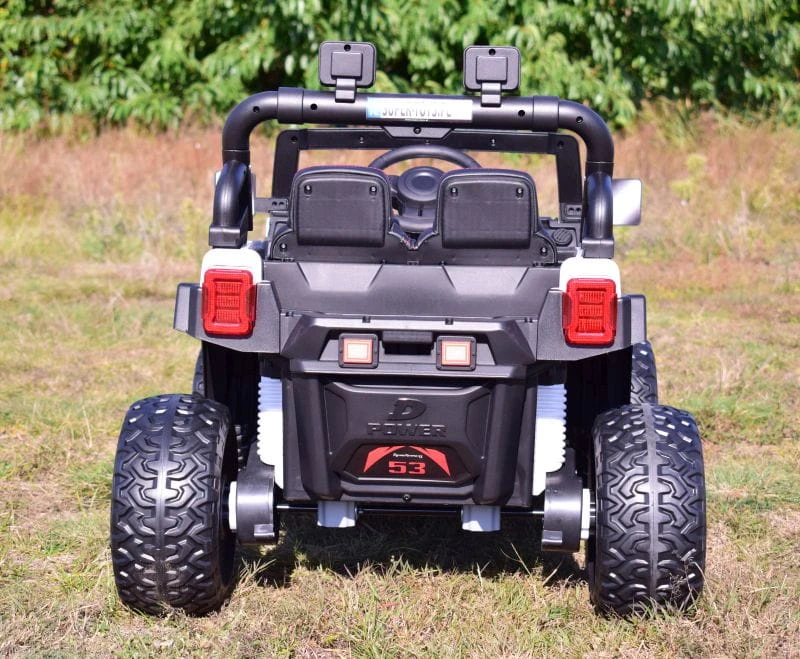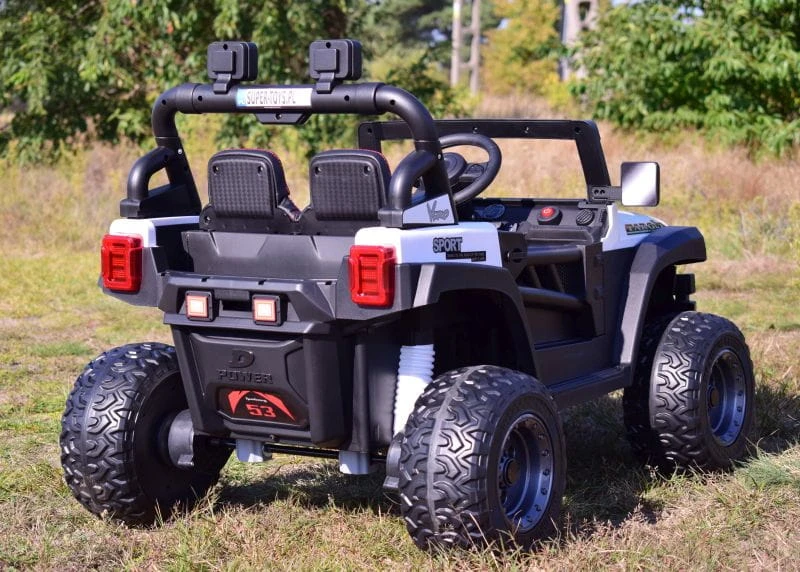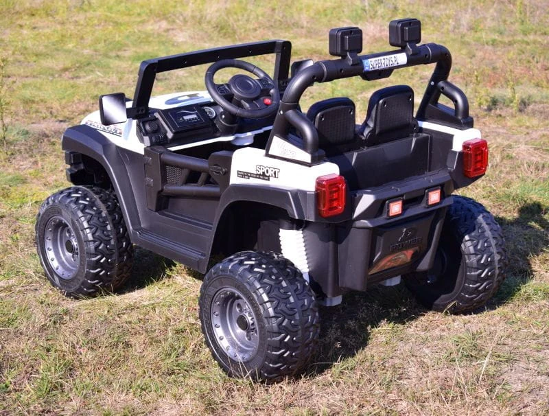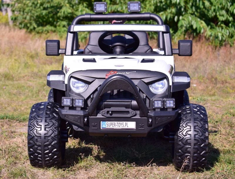 Pojazd posiada przednie światła i światła na pałąku . Nowoczesny panel z USB, AUX i wejściem na kartę oraz funkcjami sterowania pojazdem sprawią że mały Kierowca będzie czuł się komfortowo w tym pojeździe.
