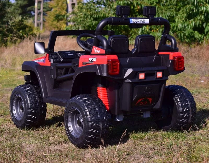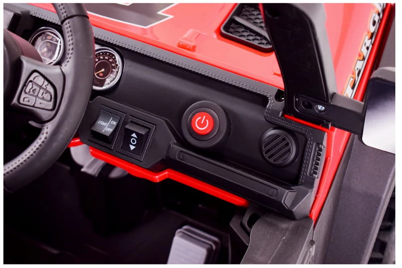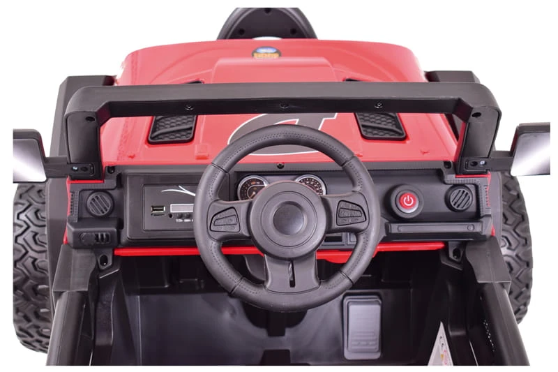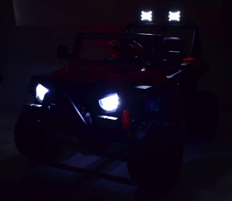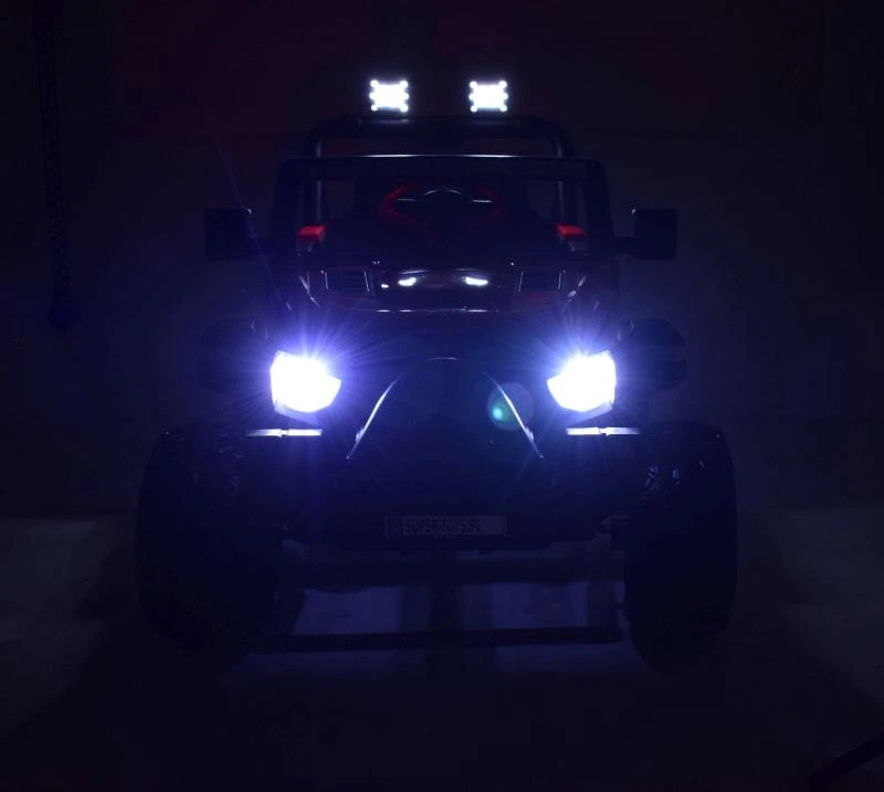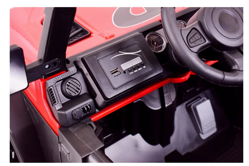 Pojazd posiada przednie światła i światła na pałąku . Nowoczesny panel z USB, AUX i wejściem na kartę oraz funkcjami sterowania pojazdem sprawią że mały Kierowca będzie czuł się komfortowo w tym pojeździe.