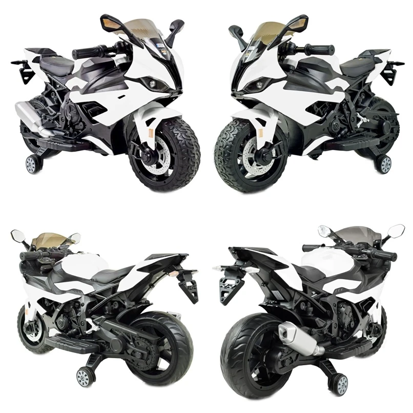 Panel z dźwiękami ( dźwięki odpalania motocykla) z wejściem USB i AUX i oświetlenie pojazdu ( światła oraz świecące koła) umili o urozmaici zabawą.
