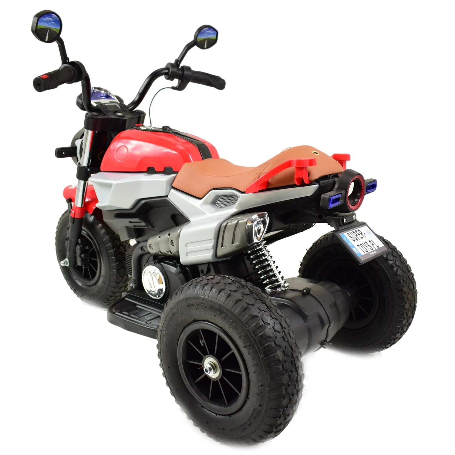 Dźwięki jazdy motoru,, pompowane koła, światła zdejmowane miękkie siedzenie, nowoczesny panel |