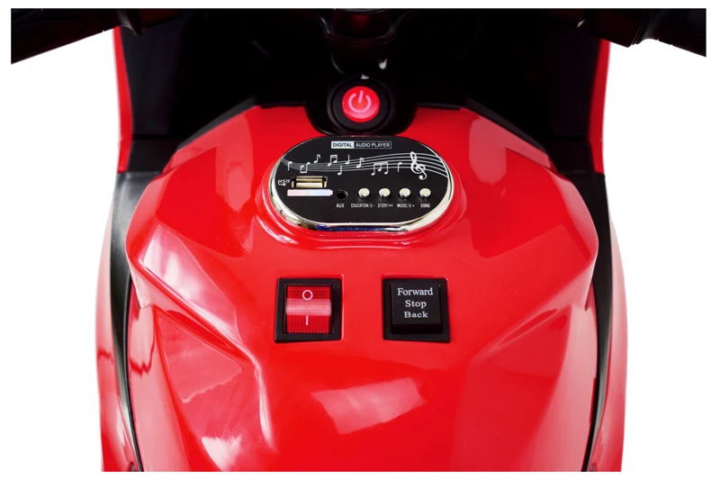 | Efekty dźwiękowe: | Tak, głos pracy silnika motoru i odgłos jazdy, wgrane w panel melodie i opowieści, klakson. Wejście USB, MP3. |