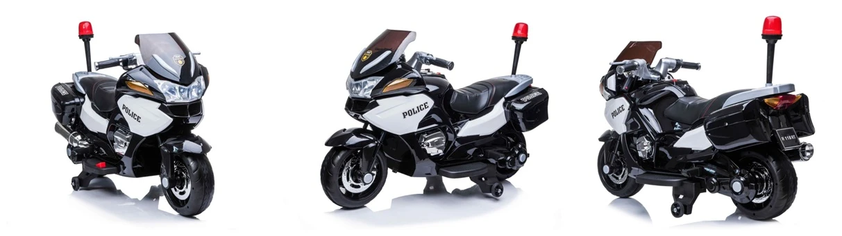 SZYBKI MOTOR POLICYJNY Z GAZEM W RĄCZCE I HAMULCEM HZB-118 z 2 silnikami 45 wat z całą pewności zainteresuje młodego wielbiciela motocykli.