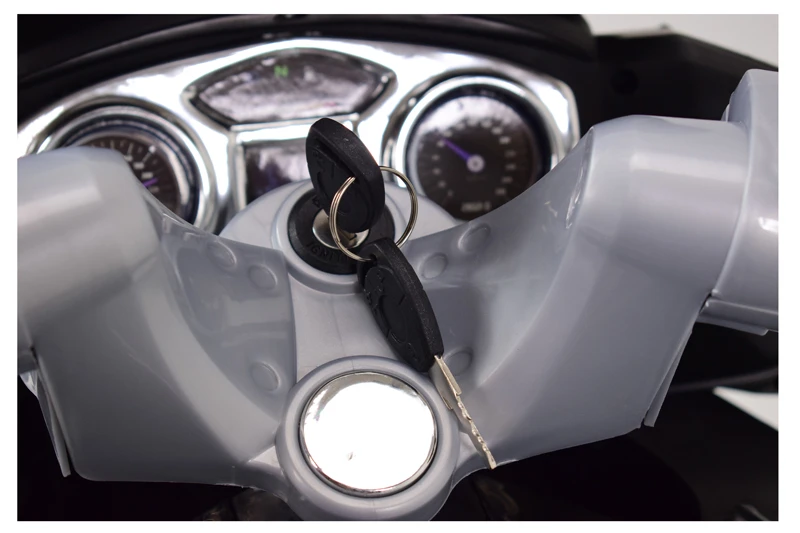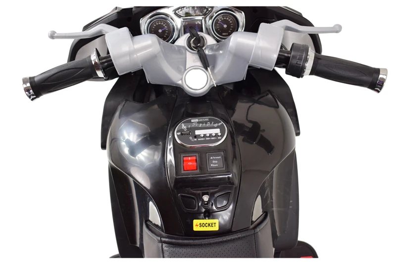 Po włączeniu dźwięki odpalania prawdziwego motocykla. W panelu wejście na USB,slot na kartę pamięci i AUX. wskaźnik naładowania akumulatora i wgrane piosenki i opowieści.